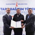 Sancaktepe Belediyesi, uzun süredir devam eden tapu sorunlarını çözme yönünde önemli adımlar atmaya devam ediyor. Abdurrahman Gazi, Akpınar, Eyüp Sultan, Merve, Mevlana, Osman Gazi ve Veysel Karani mahallelerinde yaşayan 83 hak sahibi, düzenlenen törenle tapularını nihayet aldılar.