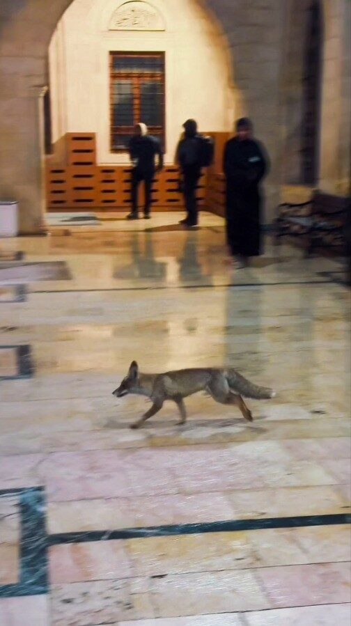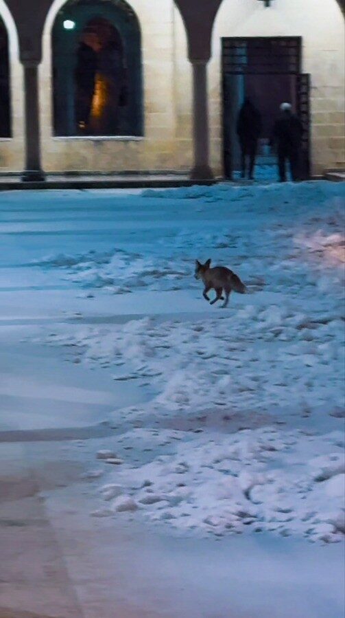 Balıklıgöl platosunda bulunan Dergah Cami avlusunda görülen tilki, vatandaşların şaşkın bakışları arasında hızla koşarak uzaklaştı.