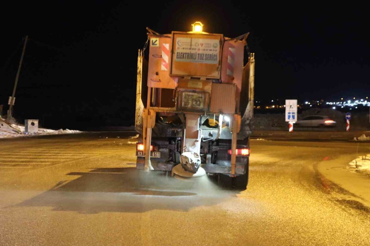 Şanlıurfa’da yoğun kar yağışı nedeniyle ulaşımda aksamaları önlemek için ekipler çalışmalarını aralıksız sürdürüyor