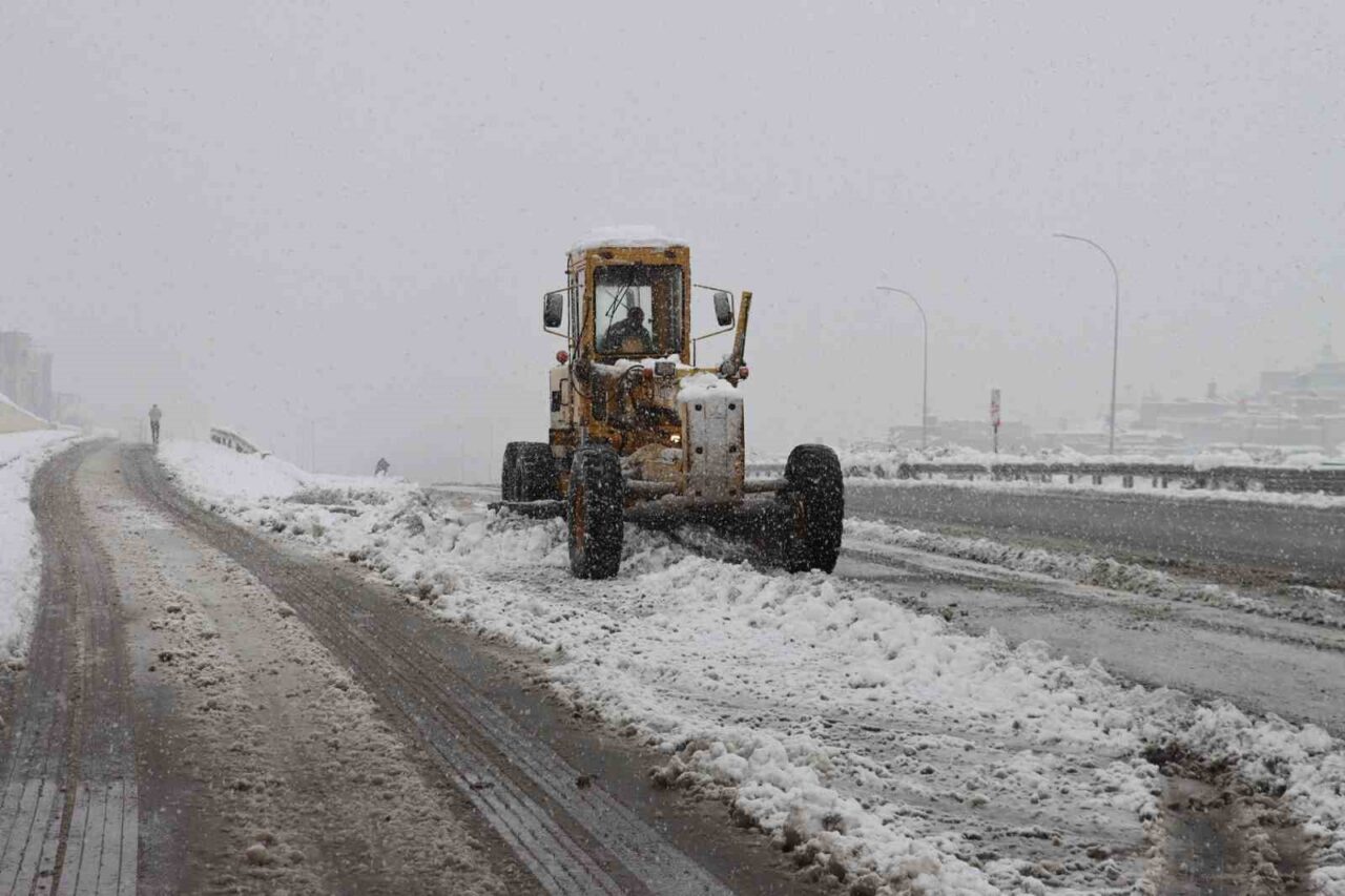 Şanlıurfa’da yoğun kar yağışı nedeniyle ulaşımda aksamaları önlemek için ekipler çalışmalarını aralıksız sürdürüyor