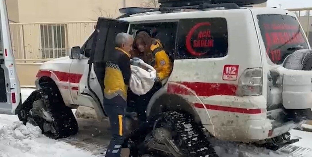 Şanlıurfa’da etkili olan yoğun kar yağışı ve olumsuz hava koşullarına rağmen 112 Acil Sağlık ekipleri, paletli ambulanslarla kırsal alanlarda meydana gelen 3 ayrı vakaya zamanında müdahale ederek hastaları hastaneye ulaştırdı.