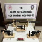 Edinilen bilgilere göre, Saray İlçe Emniyet Müdürlüğü tarafından yapılan operasyonlarda, 1 adet bitki üretim kabini, 5 saksı kenevir bitkisi, 7 kutu suni sıvı gübre, 3 öğütücü, 1 hassas terazi, 14 gram hint keneviri, çeşitli bitki üretim malzemeleri, 4 ruhsatsız tabanca, 1 ruhsatsız tüfek ve 90 adet fişek ele geçirildi. Bu durum, yasadışı faaliyetlere karşı etkin mücadelenin sürdüğünü gözler önüne seriyor.