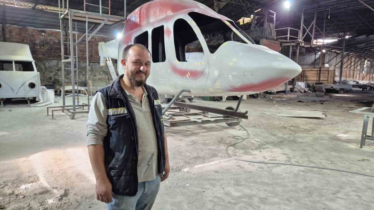 TEKİRDAĞ’DA DAHA ÖNCE FİBERGLAS OTOMOBİL VE DEV MOTOSİKLET KASKI ÜRETEN BOYACI, ŞİMDİ DE FİBERGLAS HELİKOPTER ÜRETİMİNE BAŞLADI.