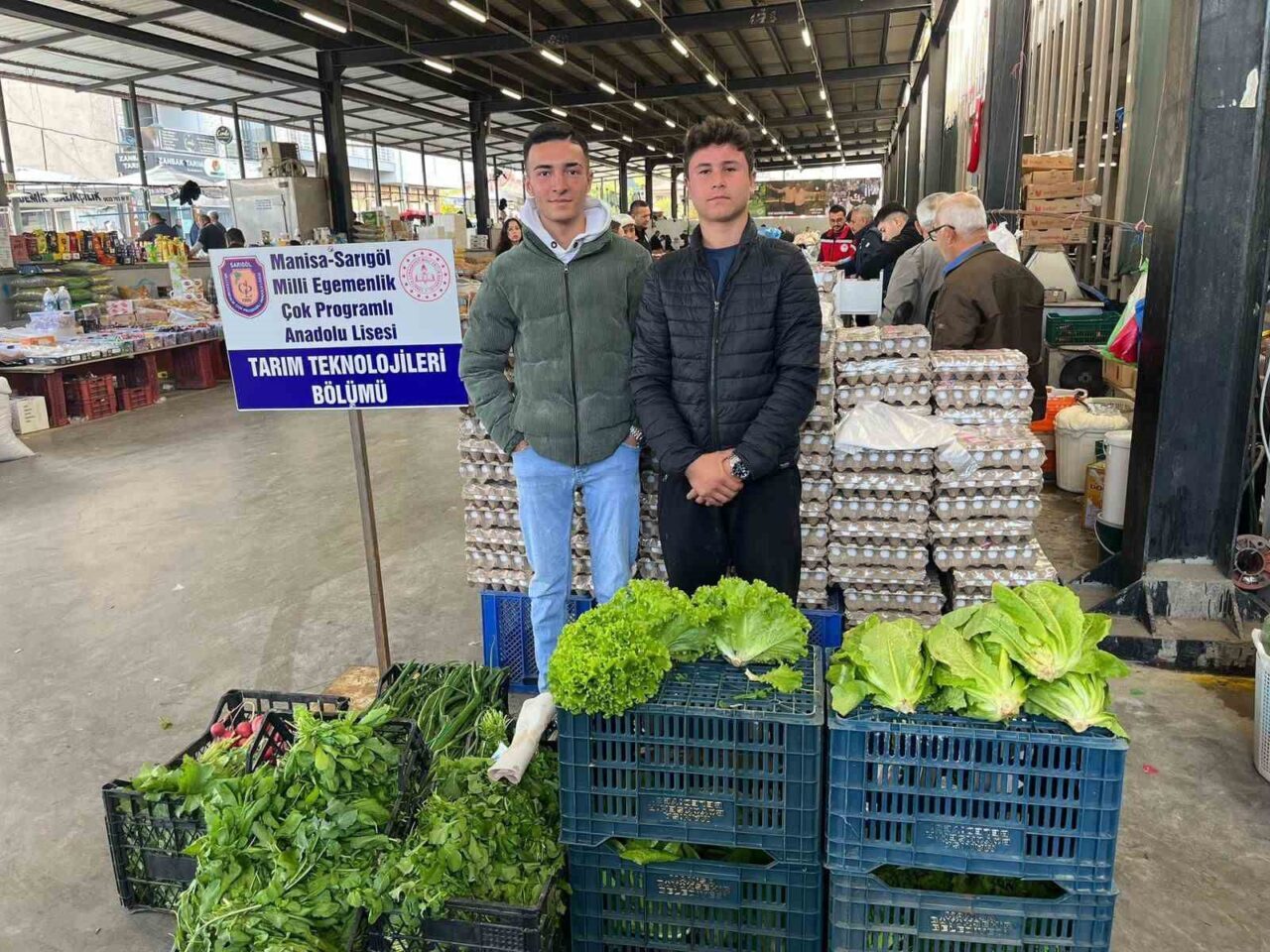 Sarıgöl Milli Egemenlik Çok Programlı Anadolu Lisesi’nin Tarım Teknolojileri Bölümü öğrencileri, okulun seralarında ve açık alanlarında özenle yetiştirdikleri kış sebzelerini her cuma günü, Şehit Haşim Dirik Kapalı Pazaryeri’nde kendilerine tahsis edilen bölümde satışa çıkarıyor. Öğrencilerin ağaçtan topladıkları bu doğal ürünler, kısa sürede yerel halkın yoğun ilgisini çekiyor.
