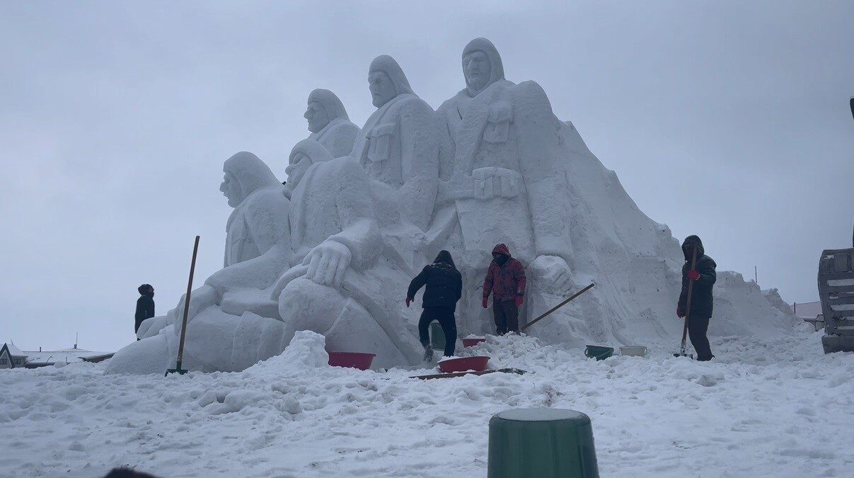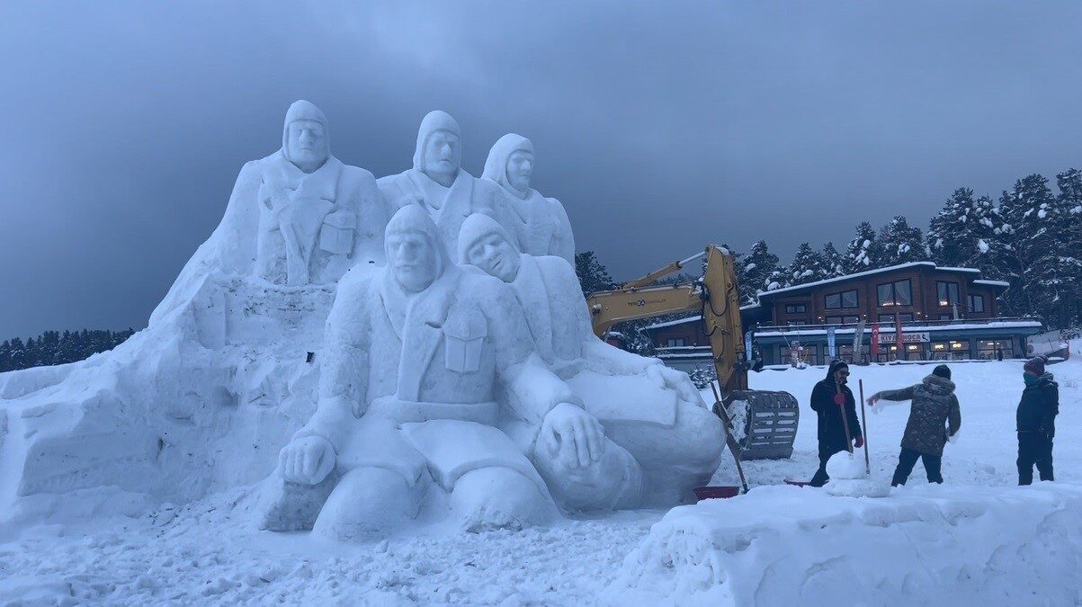 Sarıkamış Harekatı’nda şehit düşen askerlerin kardan heykellerinin yapımı tamamlandı.