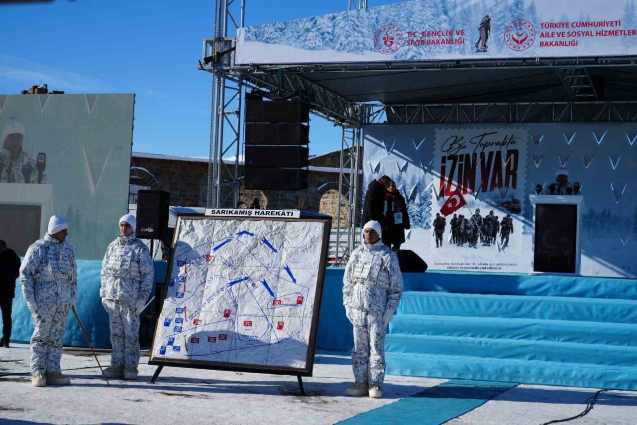 Aile ve Sosyal Hizmetler Bakanı Mahinur Özdemir Göktaş, törende yaptığı konuşmada Sarıkamış Harekâtı’nın, vatan sevgisinin en önemli imtihanlarından biri olduğunu ifade ederek, “Ecdadımızın zor zamanlarda nasıl kenetlendiği ve vatanı için hangi bedelleri göze aldığını gösteren tarihî bir duruştur. Ben bu vesileyle, 111 yıl önce, istiklâl ve hürriyet uğruna canını feda eden kahraman şehitlerimizi rahmetle ve minnetle anıyorum. Bu topraklar, fedakârlığın sessiz tanığıdır. Anadolu’nun bin yılı aşan bu tanıklık, Malazgirt’te açılan kapıyla başladı. İstanbul’un fethiyle bir medeniyet ufkuna dönüştü. Ecdadımız vatan denildiğinde asla geri adım atmadı. Her dönemi, yeni bir destanla taçlandırdı. Alparslan’ın Malazgirt zaferi, tarihe düşülen büyük destanlardan biridir. Gazi Osman Paşa’nın Plevne’de imkânsızı mümkün kılan direnişi de öyledir. Çanakkale’de “geçilmez” hükmünü tarihe yazdıran Gazi Mustafa Kemal Atatürk ve Mehmetçiğin azmi, yurdun dört bir yanı kuşatıldığında verilen Milli Mücadele, bir milletin hürriyetini dünyaya ilan ettiği diriliş destanıdır. 15 Temmuz gecesi tankların önüne yürüyen cesaret de Sarıkamış, bu destanlar zincirinin bedeli en ağır halkalarından biridir. Soğuğa, yokluğa ve imkânsıza rağmen vatan için şehadeti göze alanların mücadelesidir” dedi.