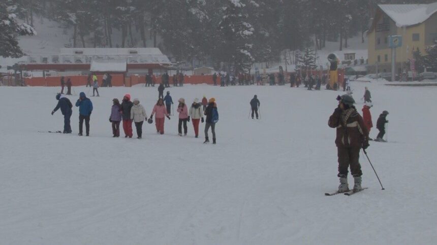Sarıkamış Kayak Merkezi’nde yoğun kar yağışıyla kayak keyfi artıyor