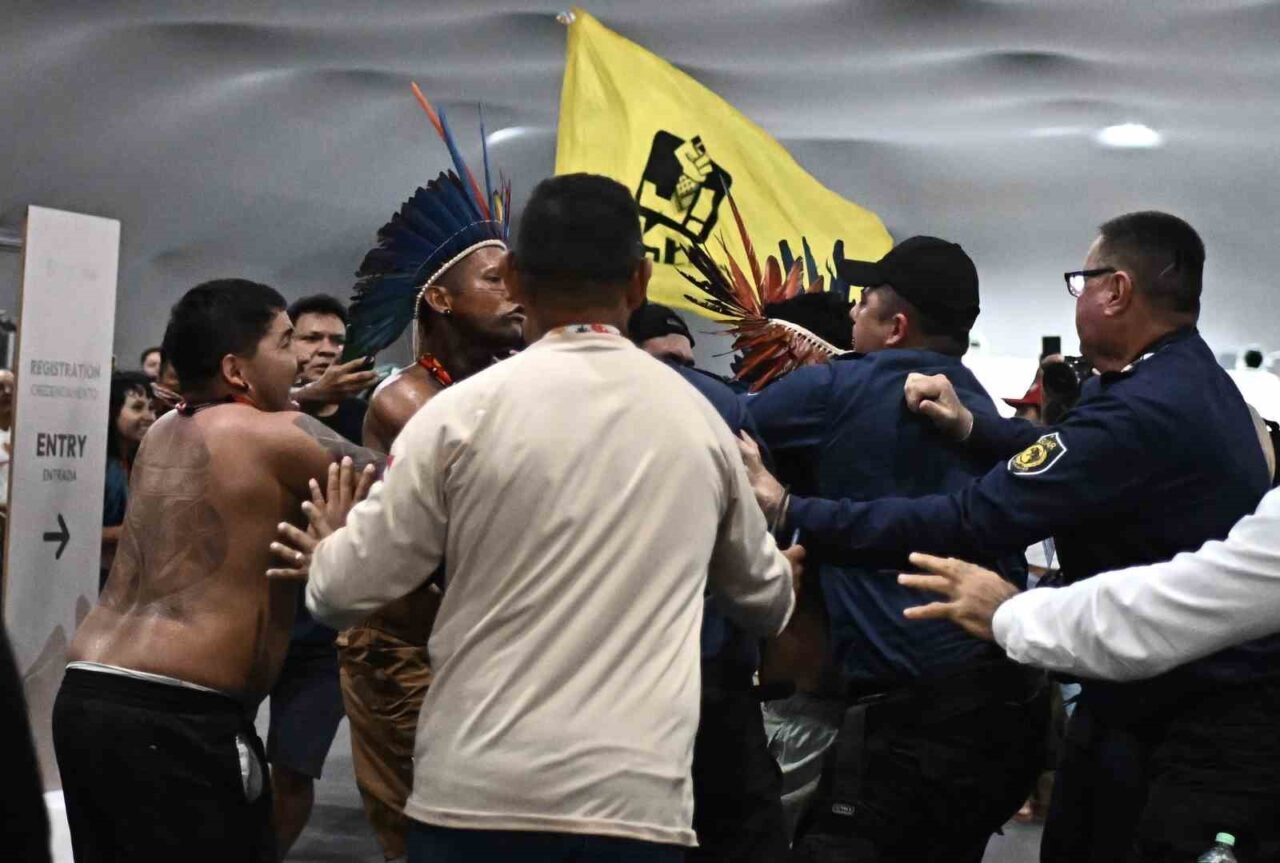 BREZLİYA’NIN BELEM KENTİNDEKİ COP30’DA İKLİM DEĞİŞİKLİĞİ VE ORMANLARIN KORUNMAMASINI PROTESTO EDEN EYLEMCİLER İLE GÜVENLİK GÖREVLİLERİ ARASINDA YAŞANAN ÇATIŞMADA 2 GÜVENLİK GÖREVLİSİ HAFİF ŞEKİLDE YARALANDI.