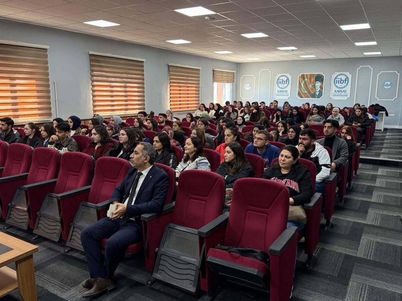 Sarıkamış Meslek Yüksekokulu’nda düzenlenen etkinlikte, Kafkas Üniversitesi İktisadi ve İdari Bilimler Fakültesi Siyaset Bilimi ve Kamu Yönetimi bölümü öğrencileriyle buluşan Kaymakam Aslantatar, kariyer yönetimi dersinin bir parçası olarak mesleki deneyimlerini paylaştı.