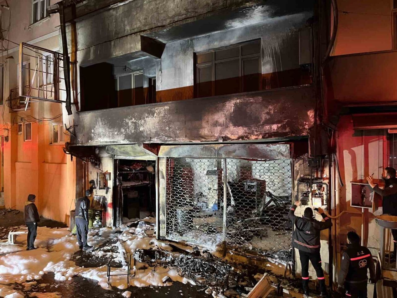 İstanbul Sarıyer’de 3 katlı binanın girişindeki motosiklet tamirhanesi alevler içinde kaldı. Yangına müdahale etmek isteyen iş yeri sahibi hafif yaralandı.