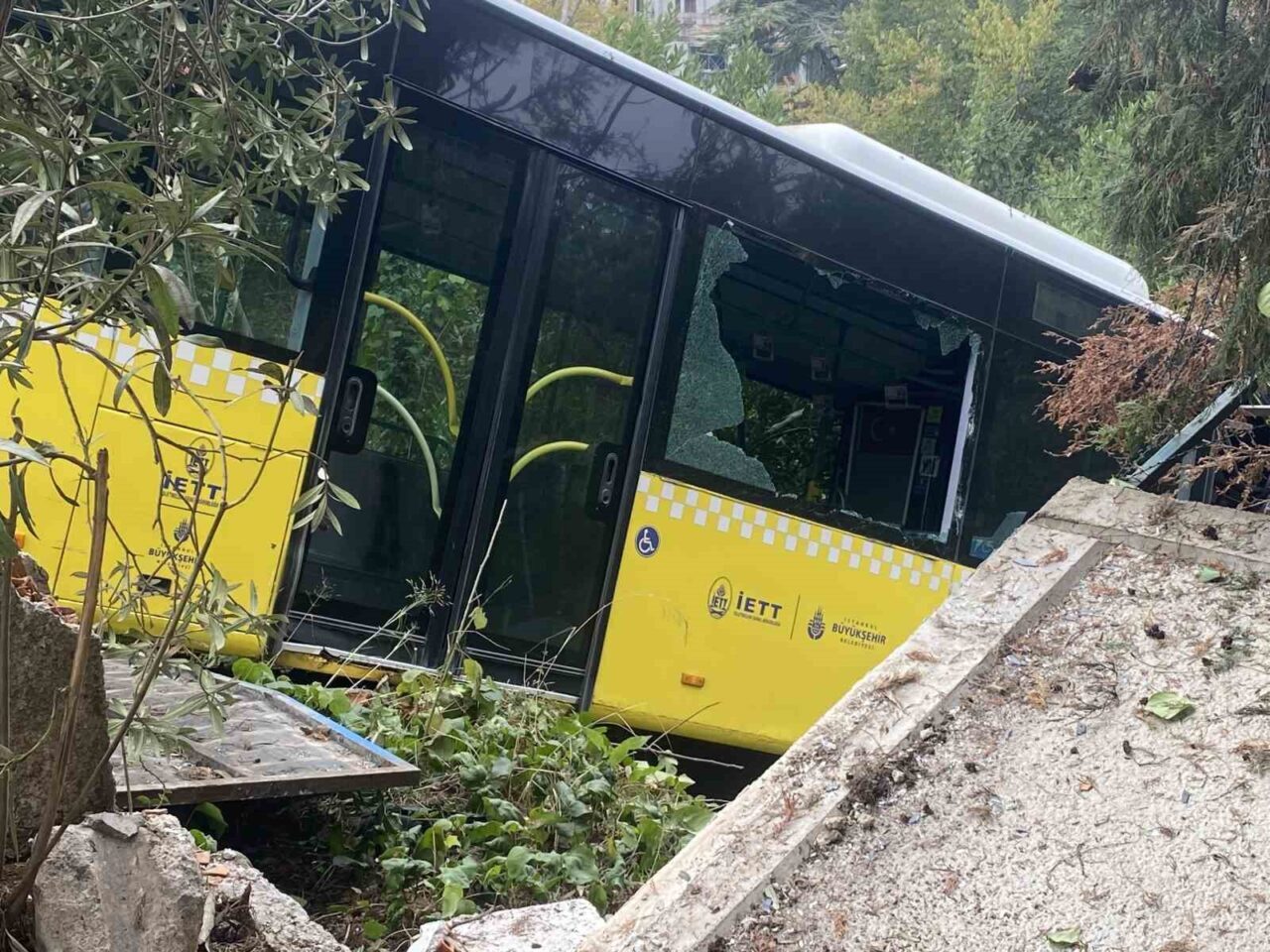 ÜSKÜDAR’DA İETT OTOBÜSÜ, ŞOFÖRÜNÜN EL FRENİNİ ÇEKMEDEN ARAÇTAN İNMESİ SONUCU HAREKET EDEREK YOL SONUNDA BULUNAN BİR SİTENİN İSTİNAT DUVARINA ÇARPTI.