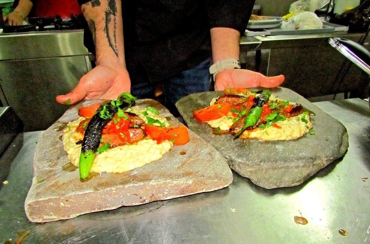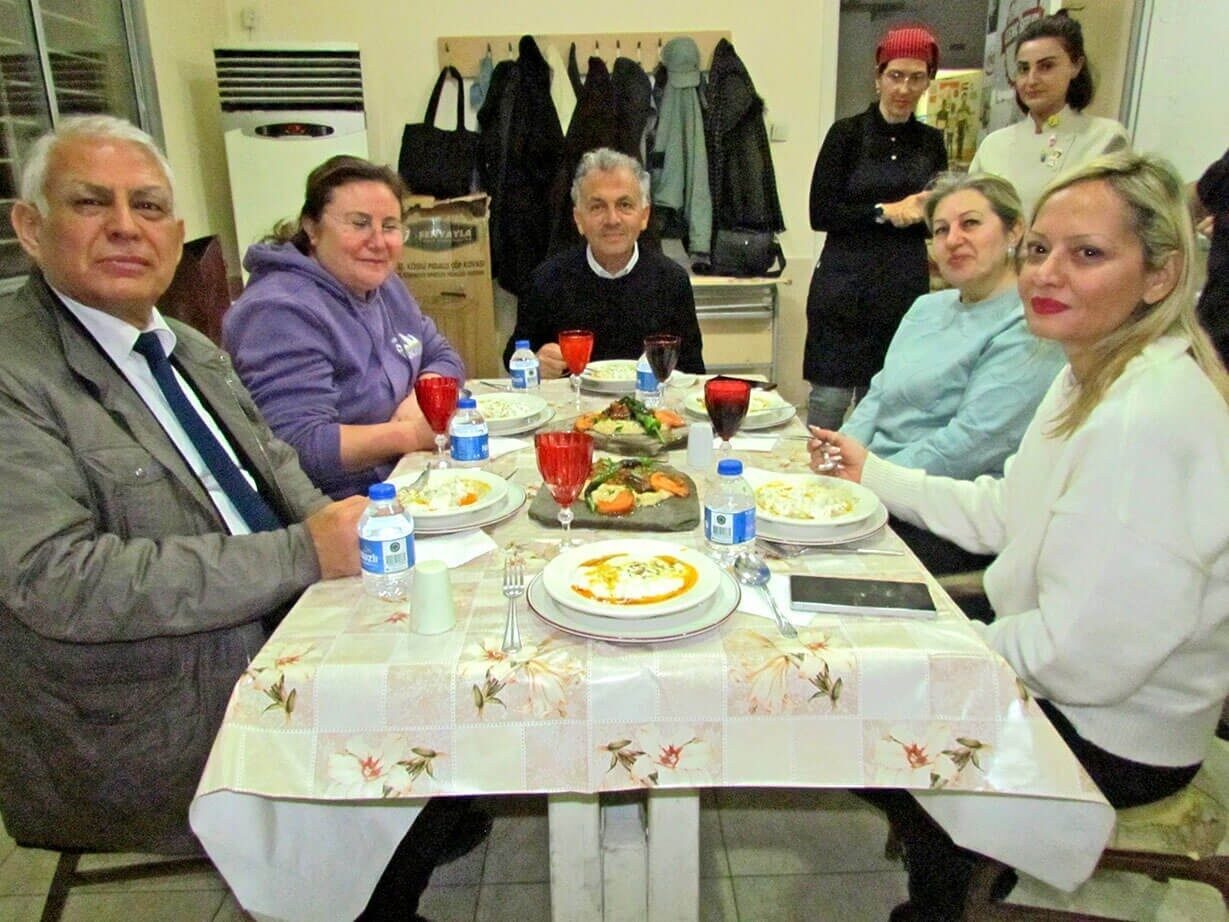 Şef Serkan Özcan, Çeşme Halk Eğitim Merkezi Müdürü Ali Rıza Doğruyol, Çeşme Gümrük Müdürü Orhan Evintan ile eşlerini ve Çeşme İlçe Tarım ve Orman Müdürü Mine Altın’ı özel bir akşam yemeğinde ağırladı. Gecede konuklara Anadolu ve Ege mutfağını bir araya getiren özel bir menü sunuldu. Özcan, “Kayseri yöresine ait el açması mantı yaptık. Yanında Ege’nin özgün lezzetlerinden Efe Sarması vardı. Beğendi yatağı üzerinde, İzmir tulumu ve bonfileye sarılı tulum peyniri ile servis edilen yemek, Çeşme domatesiyle tamamlandı” dedi.