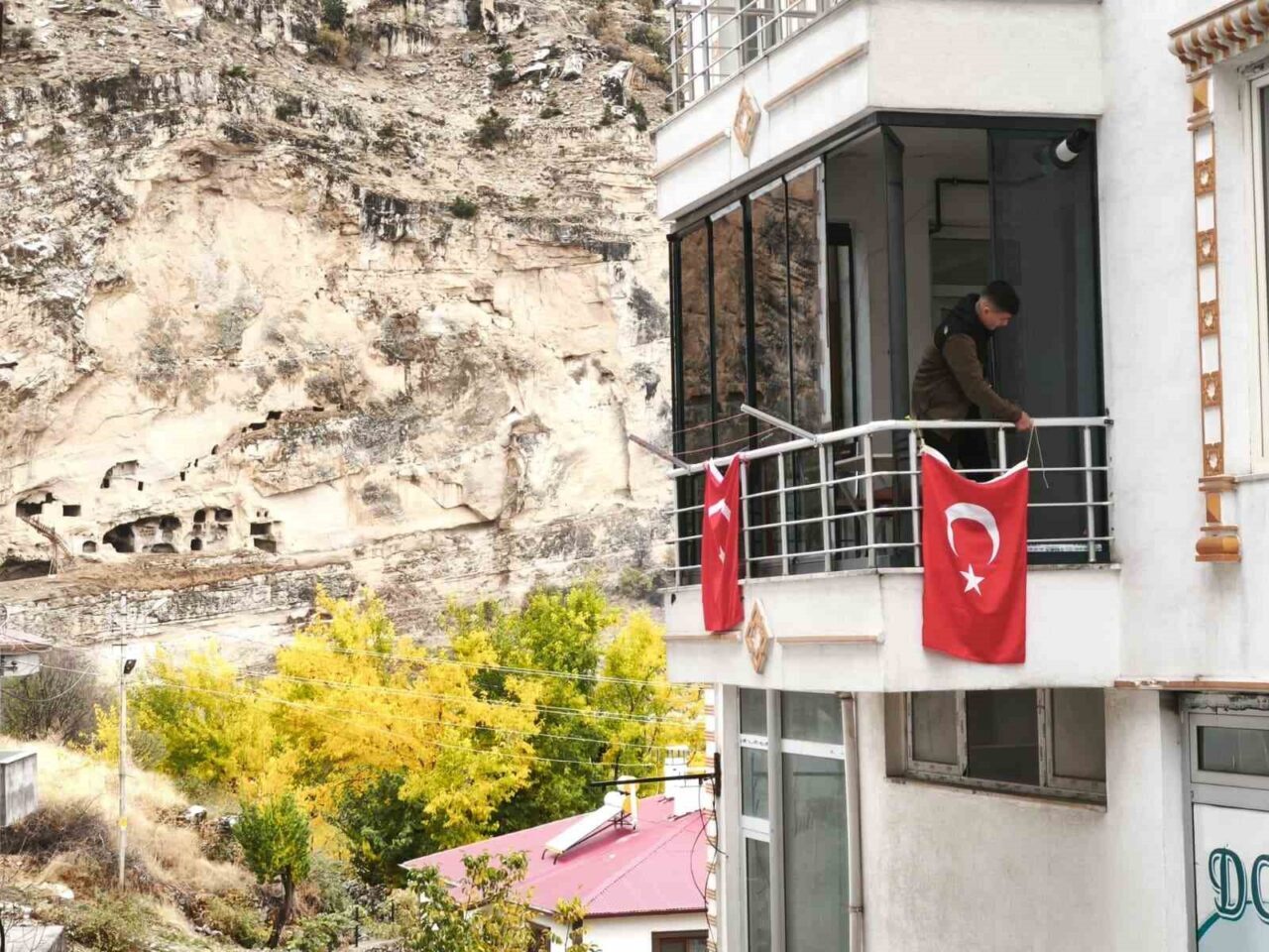 Tunceli’nin Çemişgezek ilçesinde yaşayan 14 yaşındaki Yunus Emre Akın, sosyal medyada duyduğu acılı anneye kayıtsız kalamadı. Akın, hemen evinin balkonuna çıkarak Türk bayrağı astı ve iki dakika boyunca saygı duruşunda bulundu.