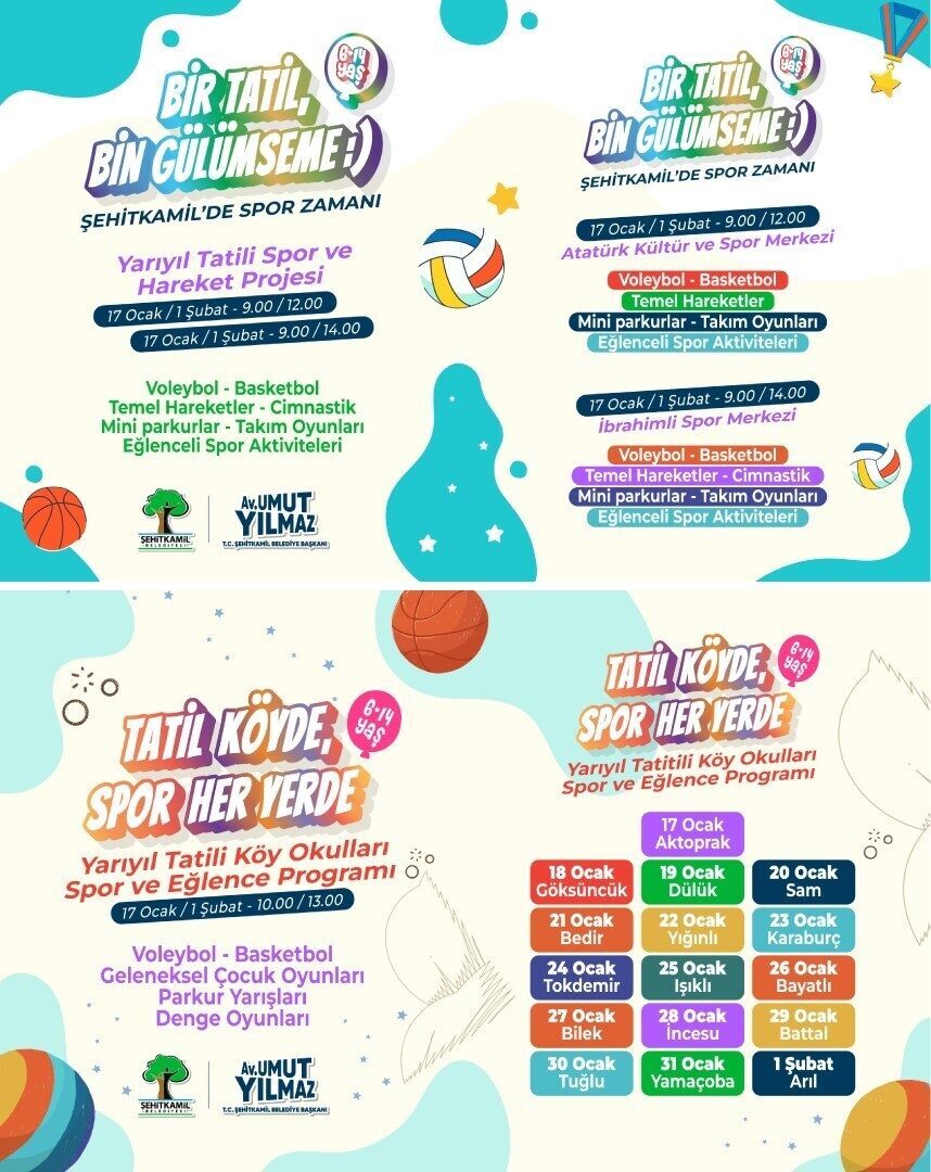 Şehitkamil Belediyesi, yarıyıl tatilinin başlamasıyla birlikte ilçenin dört bir yanında çocuklara yönelik kapsamlı bir spor ve eğlence programı başlattı. Hem kırsal mahallelerde hem de kent merkezinde düzenlenecek etkinliklerle çocukların enerjisi sporla buluşacak, yarıyıl tatili dolu dolu geçecek.