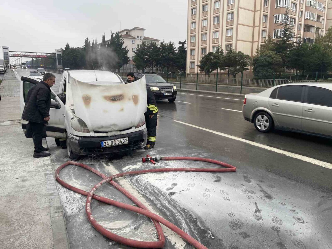 ALEV ALAN OTOMOBİLİ SÖNDÜREN İTFAİYE EKİPLERİ