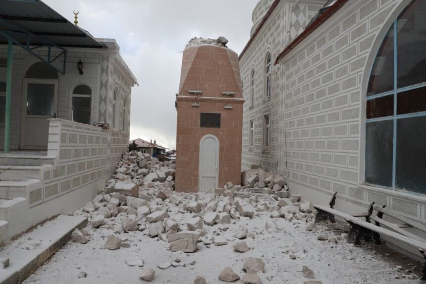 Manisa’nın Selendi ilçesinde şiddetli fırtına nedeniyle iki caminin minaresi yıkıldı