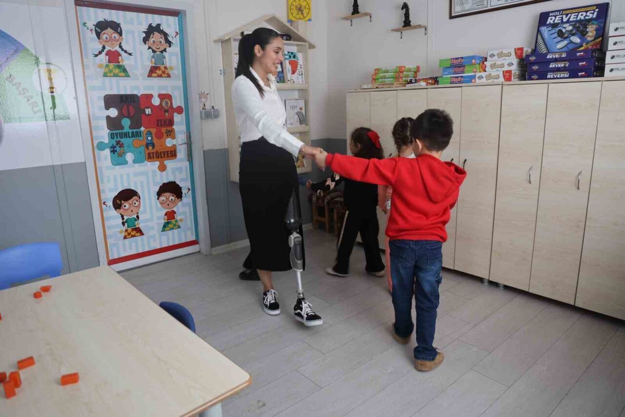 HATAY’DA DEPREMDE BABASINI KAYBEDEN VE ENKAZDAN 46 SAAT SONRA ÇIKARTILAN 27 YAŞINDAKİ ÖĞRETMEN SENA ALKAN, PROTEZ BACAĞIYLA GERİ DÖNDÜĞÜ MESLEĞİNDE ANAOKULUNDAKİ MİNİK ÖĞRENCİLERİYLE BİRLİKTE YENİDEN YAŞAMA TUTUNDU.