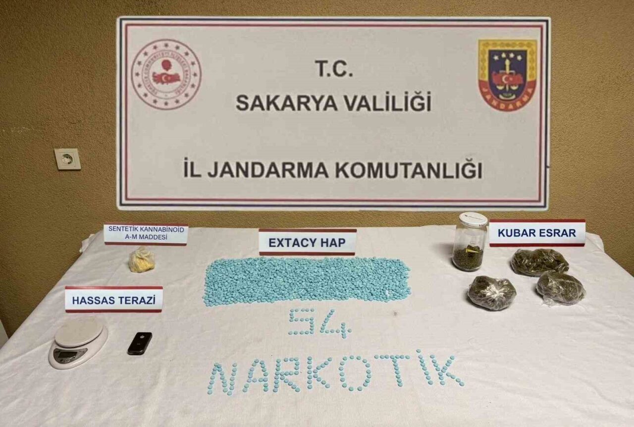 Serdivan ilçesinde kaçakçılık ve uyuşturucu madde imal ve ticareti yaptığı belirlenen E.C.K (25) ve E.A. (30), İl Jandarma Komutanlığı ekipleri tarafından düzenlenen operasyonla gözaltına alındı. Şahısların konutlarında yapılan aramalarda 2 bin 65 adet ecstasy hap, 445 gram esrar, 88 gram bonzai, 60 gram amfetamin maddesi ile 2 hassas terazi ele geçirildi. Adli işlemlerinin tamamlanmasının ardından şüphelilerden E.C.K.’nın tutuklanarak cezaevine gönderildiği bildirildi.