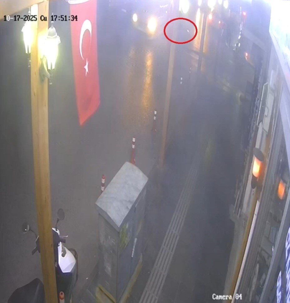Kaza anı, çevredeki bir iş yerinin güvenlik kamerası tarafından kaydedildi. Görüntülerde, motosikletin aniden devrildiği ve hemen ardından bir aracın geçiş yaptığı, çevredeki şahısların ise yaralıya yardım etmeye çalıştığı görülüyor.