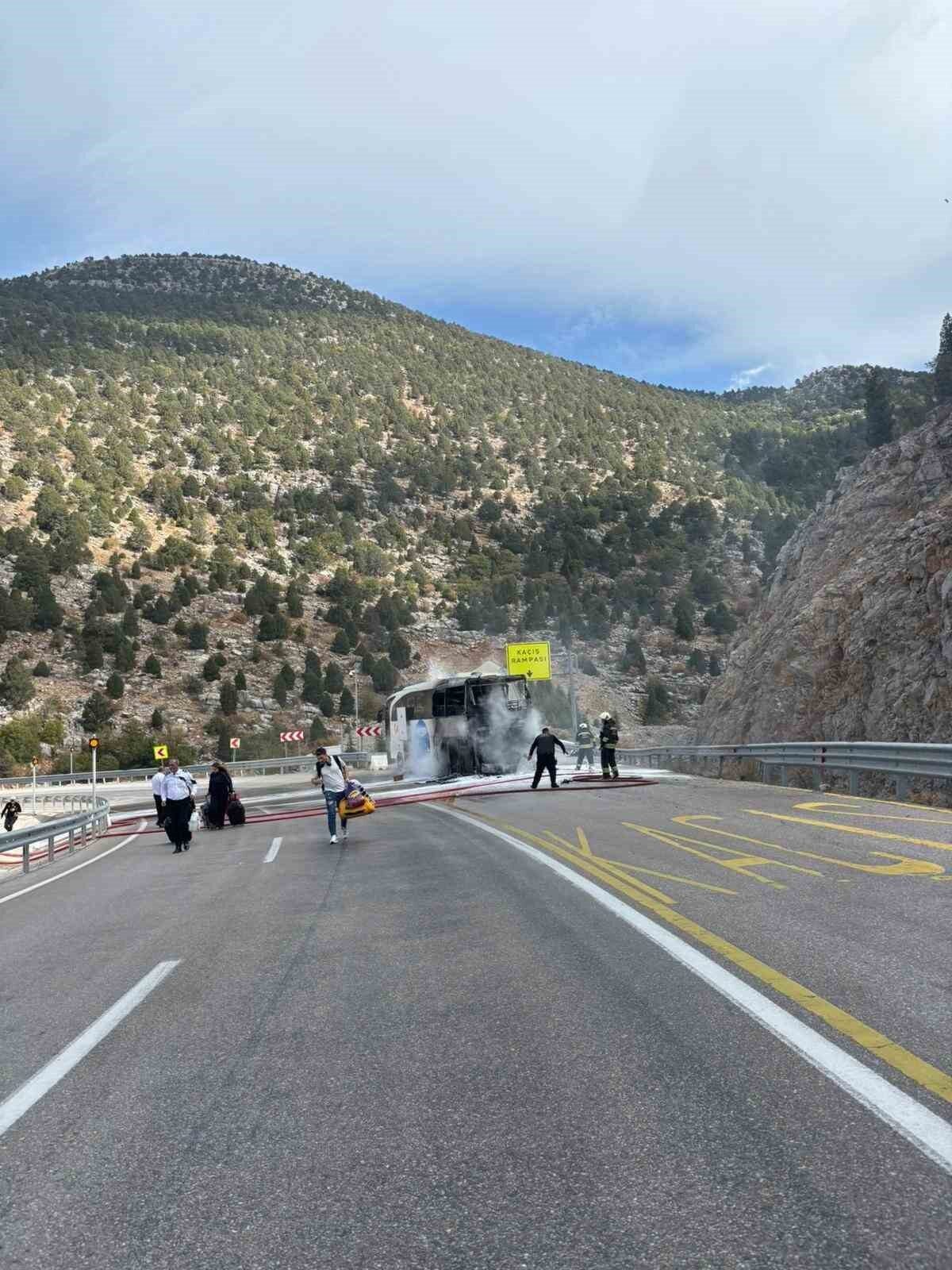 Olay, öğle saatlerinde Seydişehir ile Antalya arasında yer alan kara yolunun 7. kilometresindeki kaçış rampasında gerçekleşti. Alınan bilgiye göre, Antalya’nın Alanya ilçesinden Seydişehir yönüne giden bir Metro Turizm otobüsünün motor kısmında yangın meydana geldi. Yangını gören otobüs sürücüsü, aracı güvenli bir şekilde durdurarak yolcuları tahliye etti. Durumun ilgili mercilere bildirilmesi üzerine, bölgeye itfaiye ekipleri sevk edildi ve yangın kısa sürede söndürüldü.