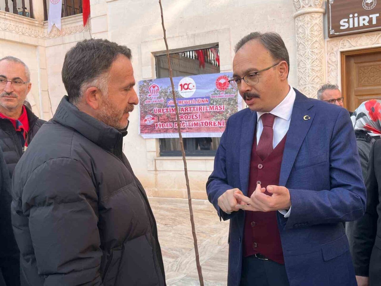 Siirt Valiliği, Vali Kemal Kızılkaya’nın katılımıyla iki önemli tarım projesini hayata geçirerek çiftçilere 25 bin 700 fıstık ve 4 bin 300 Trabzon Cennet Hurması fidanı dağıttı. Dağıtım, Tarım Müzesi ve Eğitim Merkezi’nde düzenlenen bir törende gerçekleştirildi.