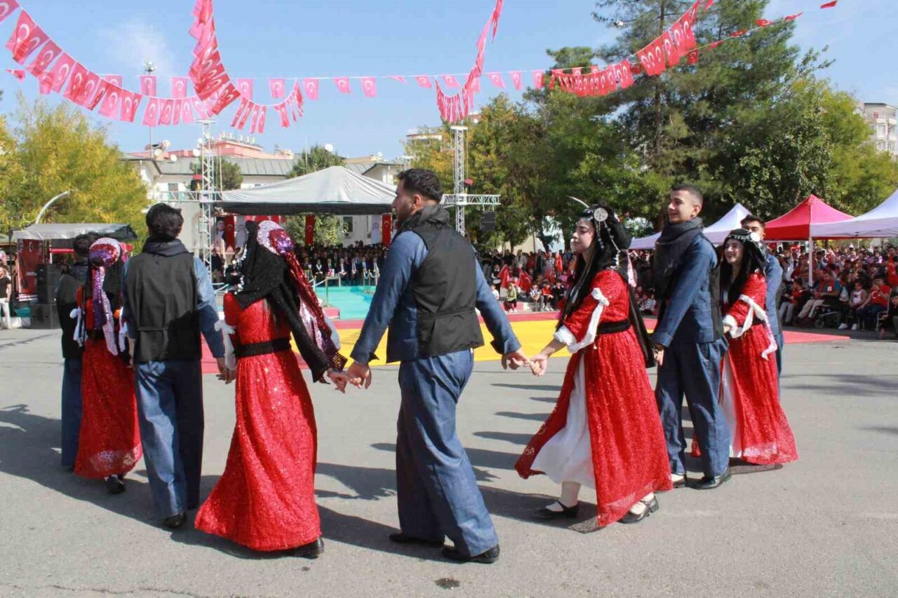 Törenin ilerleyen kısmında öğrenci grupları çeşitli şiirler seslendirirken, halk oyunları gösterileri ile katılımcılara keyifli anlar yaşattılar. Vatandaşların yoğun ilgi gösterdiği bu coşkulu etkinlik, geleneksel resmi geçit töreniyle sona erdi.