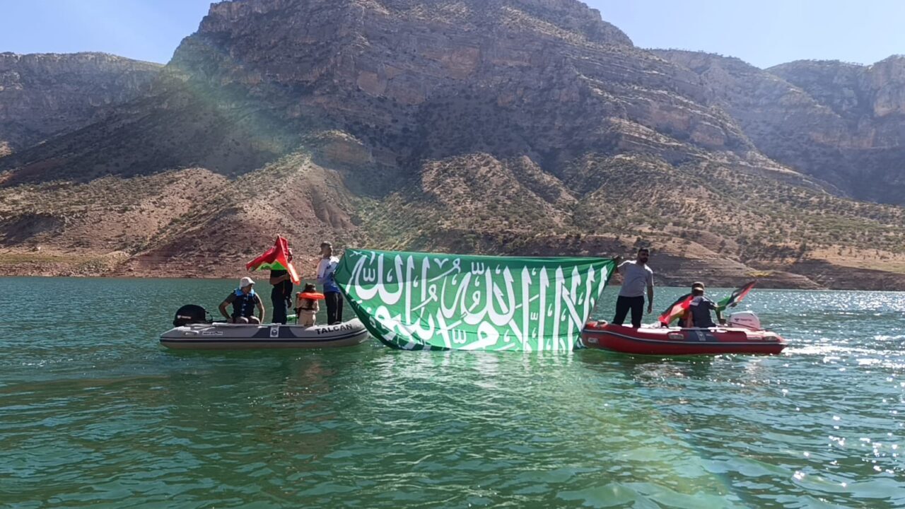 Gazze’ye insani yardım ulaştırma amacıyla yola çıkan Küresel Sumud Filosu’na yönelik İsrail’in saldırısını protesto etmek için Siirt’teki vatandaşlar, Botan Çayı üzerinde teknelerle bir gösteri gerçekleştirdi.