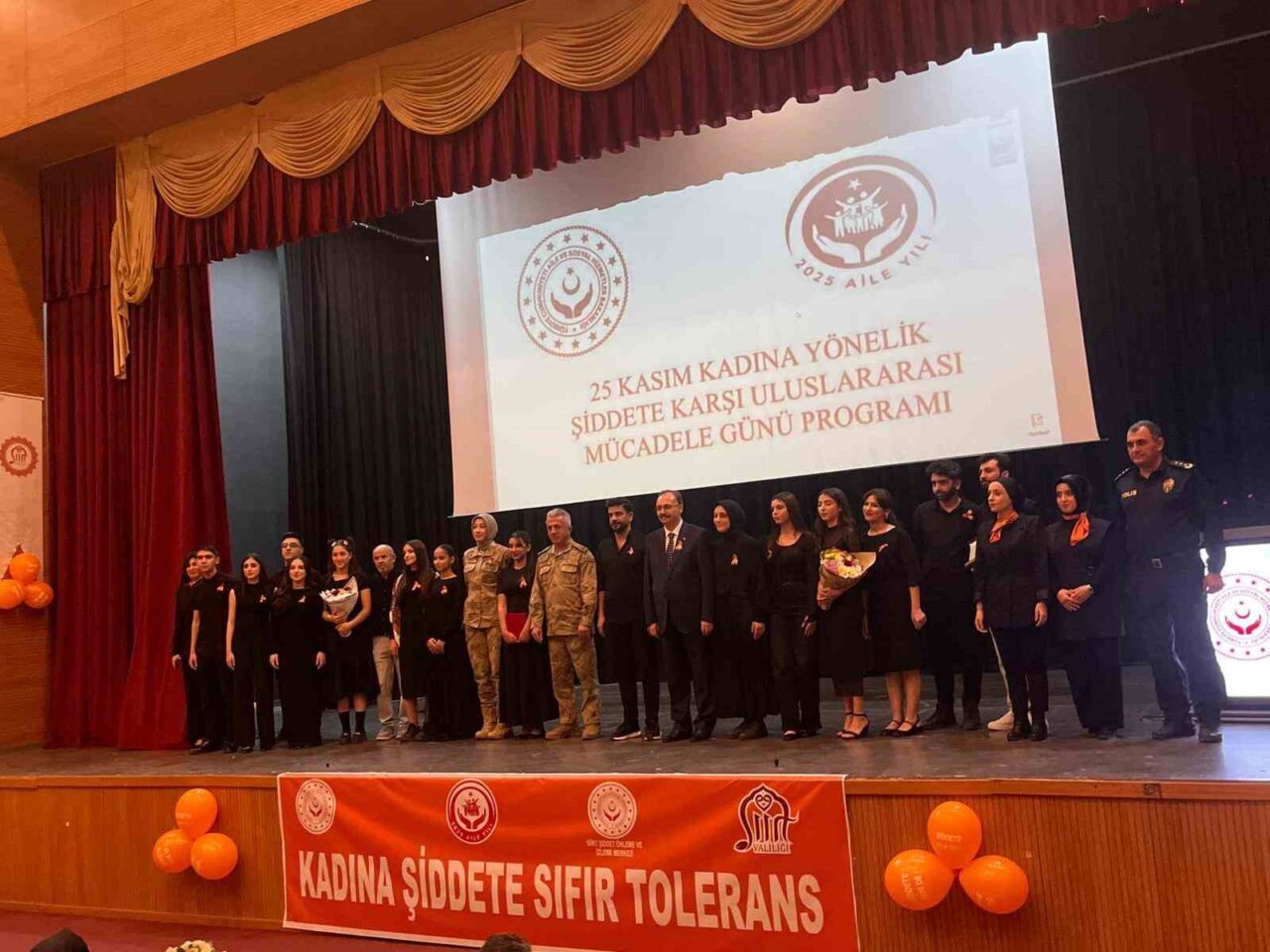İl Milli Eğitim Müdürlüğü’nün konferans salonunda düzenlenen etkinlikte konuşan Vali Kızılkaya, kadına yönelik şiddet konusunda duyarlılık oluşturmak amacıyla bir araya geldiklerini belirtti. Şiddetin yalnızca bireyleri değil, tüm toplumu etkilediğine dikkat çeken Kızılkaya, “Bu tür davranışlar, aile yapısını bozmanın yanı sıra toplumsal düzeni de tehdit ediyor. Kadına karşı her tür şiddeti, insanlığa karşı bir ihanet olarak değerlendiriyoruz. Kadınlar, ailelerin temeli ve toplumun vicdanıdır” diye belirtti.
