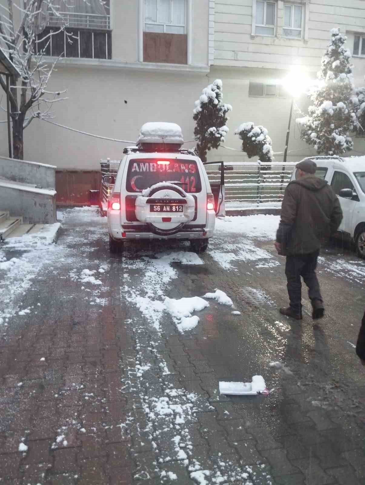 Siirt’te rahatsızlanan hastalar, kar yağışı nedeniyle kapalı yollar açılarak hastaneye ulaştırıldı.