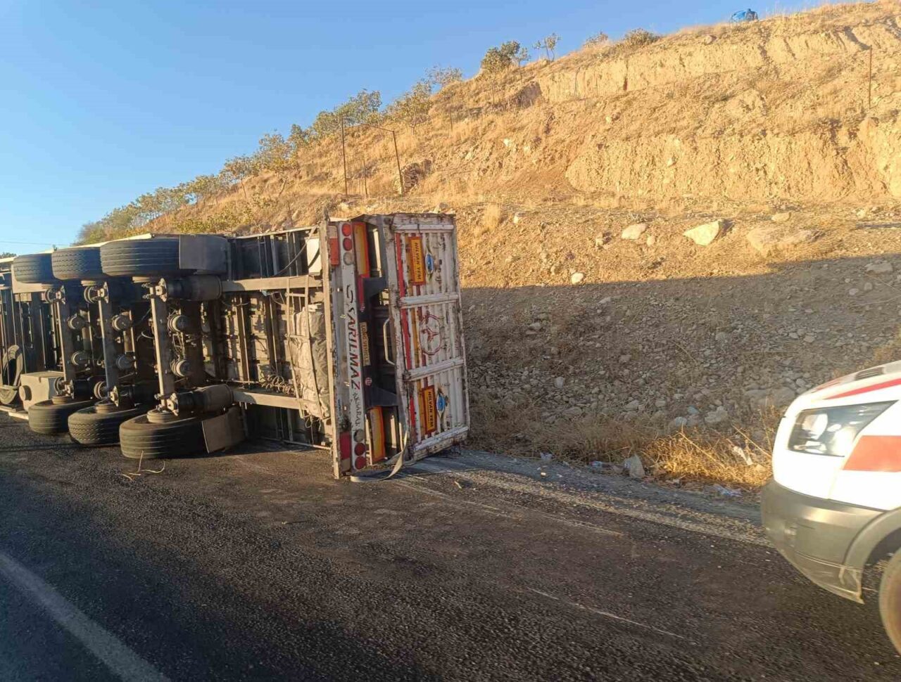 Siirt’te akşam saatlerinde meydana gelen bir kazada, virajı alamayan tır sürücüsünün kontrolünü kaybetmesi sonucu araç devrildi.