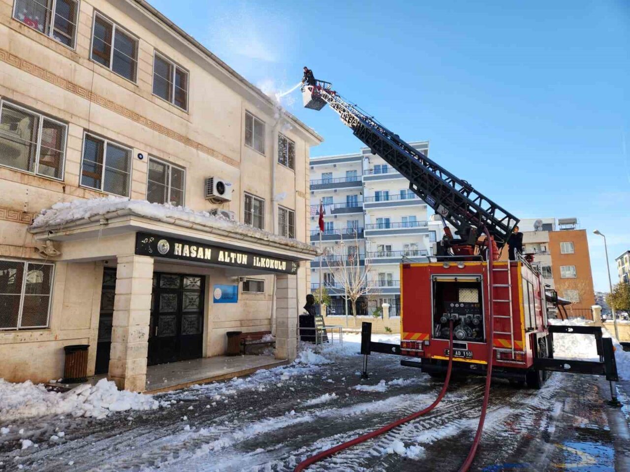 Siirt Belediyesi İtfaiye Müdürlüğü ekipleri, yaya ve araç trafiğinin yoğun olduğu cadde ve sokakların yanı sıra okul binaları ve kamu kurumlarında da önlem aldı. Çatılarda ve saçaklarda biriken kar kütleleri, merdivenli itfaiye araçları kullanılarak kontrollü bir şekilde temizleniyor.
