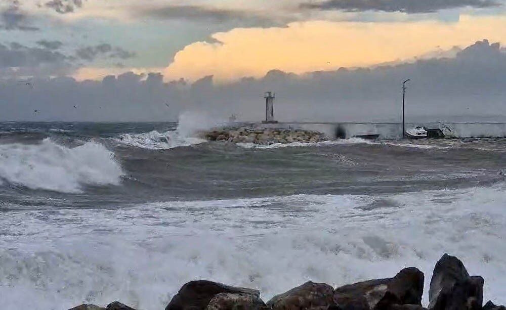 Zaman zaman tehlikeli boyutlara ulaşan dalgalar kıyı hattında etkisini gösterdi. Bir kadın yürümekte güçlük çekti.