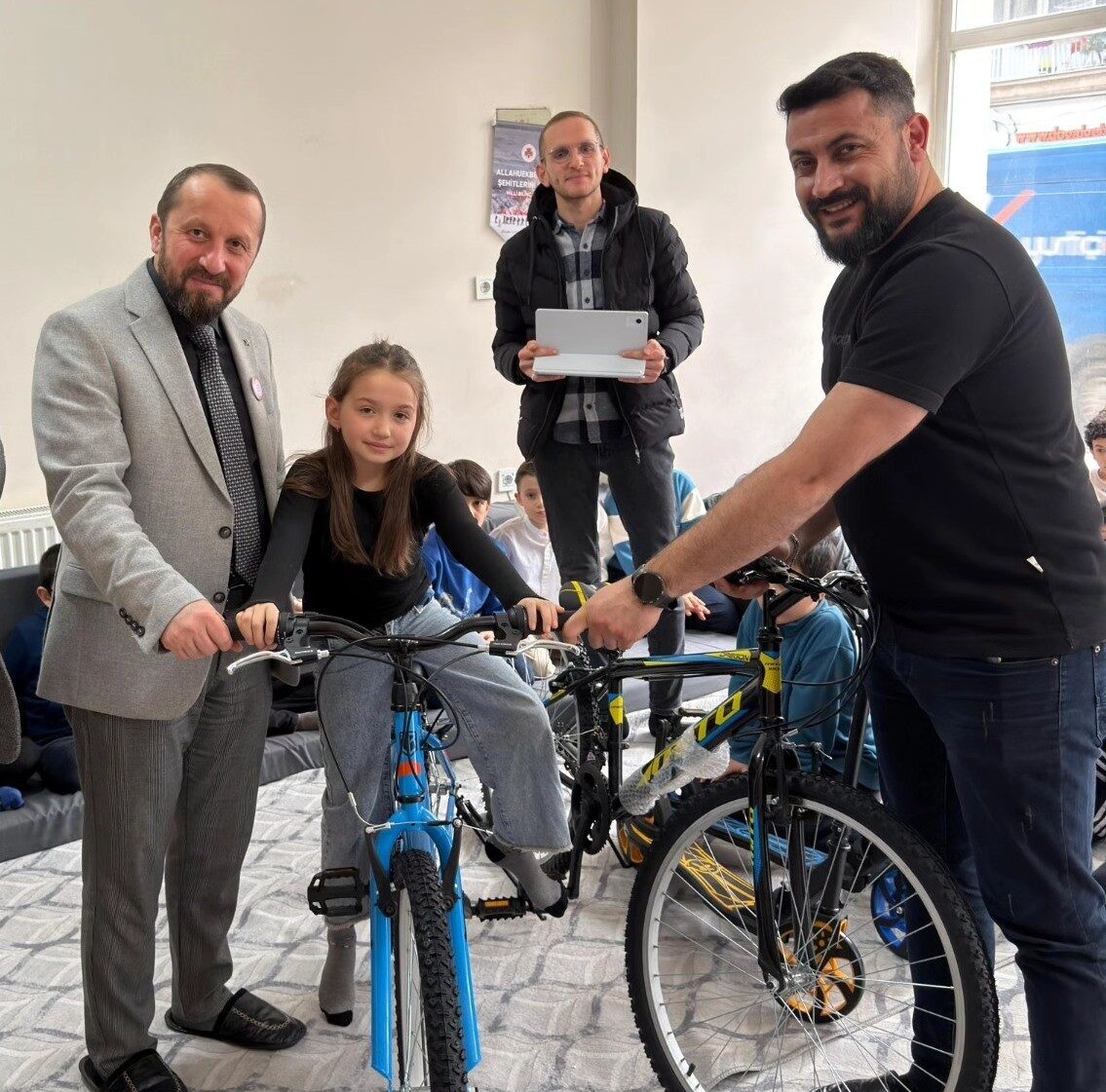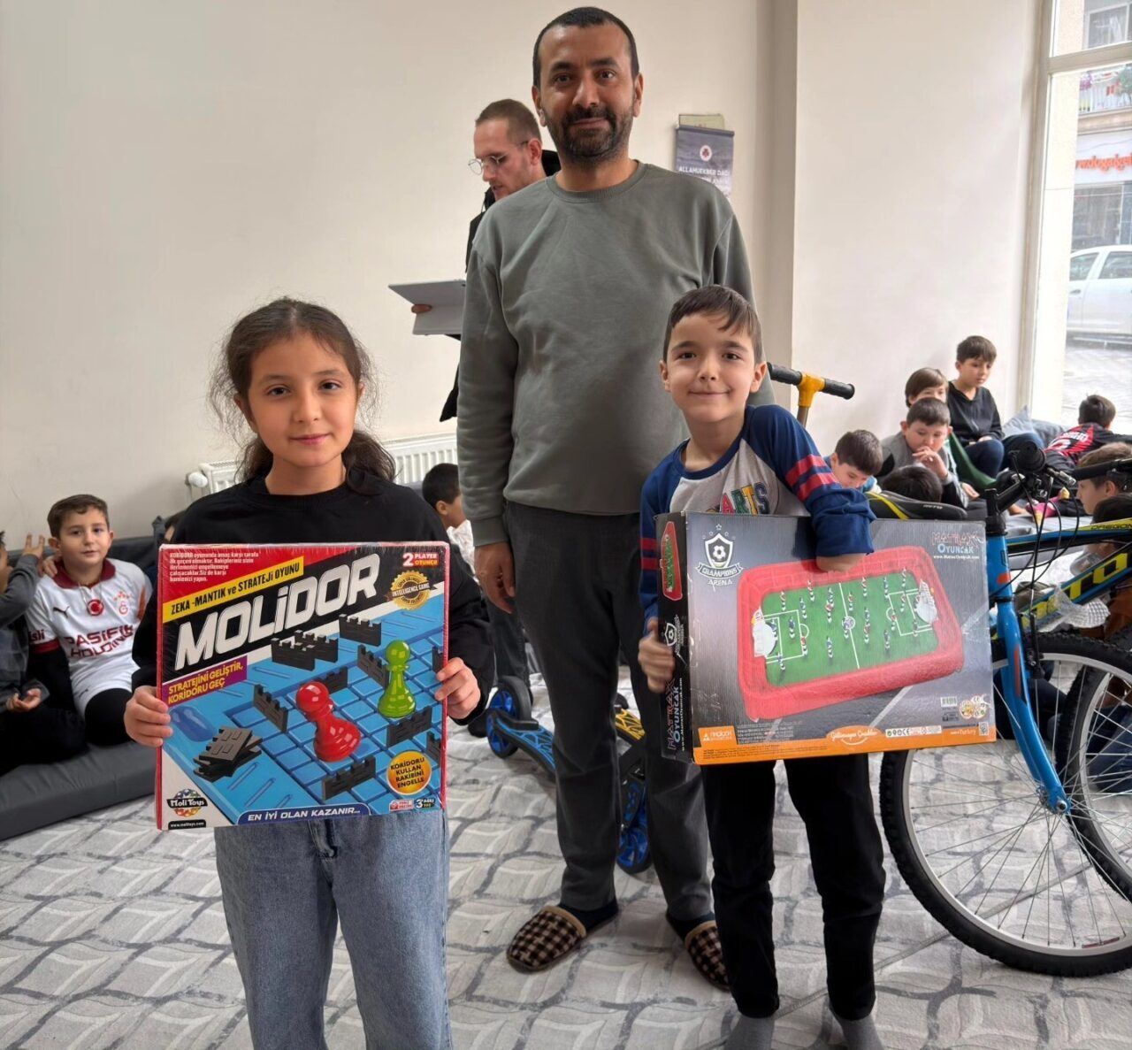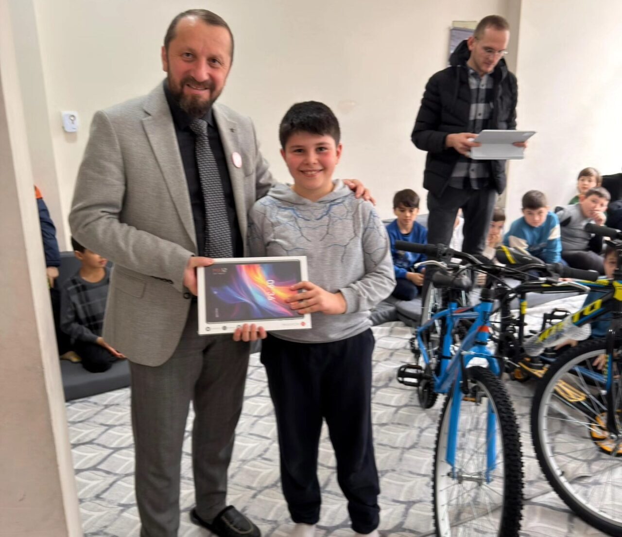 Manevi Danışman ve Diyanet İzcilik Lideri Cuma Ali Tosun ile Genç Ofis’te din görevlilerinin çabalarıyla gerçekleştirilen eğitim faaliyetleri kapsamında anlamlı bir program düzenlendi. Dönem boyunca gösterdikleri namaz bilinci, dini hassasiyetleri ve ders başarıları için öğrenciler ödüllendirildi. Simav İlçe Müftüsü Hasan Serçe, Şube Müdürü Hakkı Balı ve görevli hocalar tarafından dereceye giren kız ve erkek öğrencilere, hayırseverlerin katkılarıyla çeşitli hediyeler takdim edildi. Kız ve erkek öğrenciler arasından birincilere bisiklet, ikincilere tablet, üçüncülere ise scooter hediye edildi. Programa katılan tüm öğrencilere akıllı saat, Bluetooth kulaklık, hoparlör ve çeşitli akıl-zeka oyunları dağıtıldı.