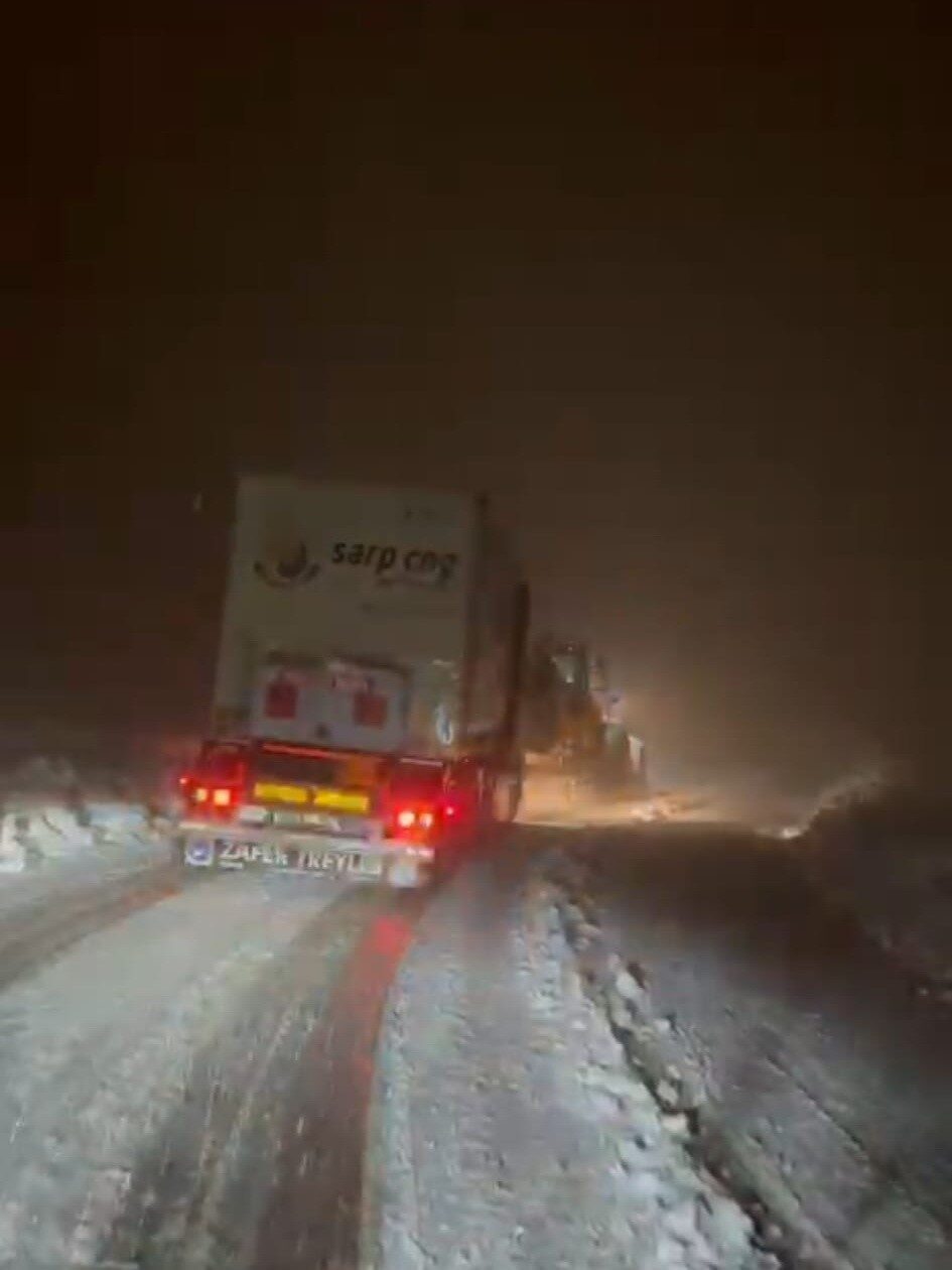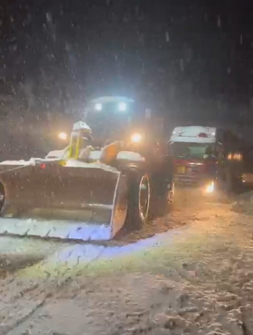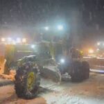 Kar kalınlığının 1 metreyi aştığı Adıyaman’ın Sincik ilçesine, sıkıştırılmış doğalgaz taşıyan bir tırın ulaşabilmesi için 3-4 iş makinesi birlikte tırı çekti.