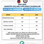 Bu veriler doğrultusunda, 2025 yılında bir önceki yılın aynı dönemine kıyasla operasyon sayısında yüzde 11, şüpheli sayısında yüzde 31, tutuklu ve adli kontrol sayılarında ise yüzde 100 artış yaşandığı bildirildi.