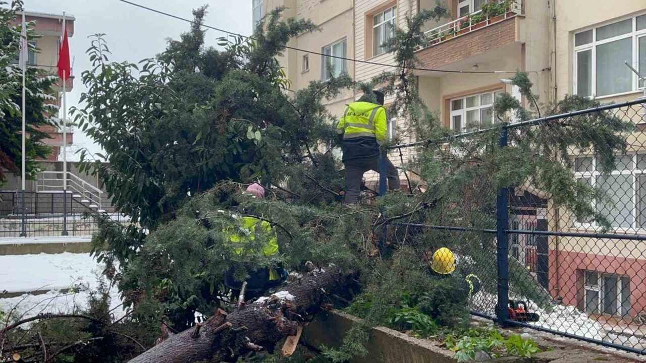 Olay, saat 15.50 sıralarında Yenimahalle Hastane Yolu Sokak’ta gerçekleşti. Edinilen bilgilere göre, Sinop Atatürk Spor Salonu’nun bahçesinde bulunan bir ağaç, henüz tespit edilemeyen bir nedenle kökünden sökülerek devrildi. Bahçe bariyerlerini aşan dev ağaç, o esnada yol kenarında park etmiş hafif ticari bir aracın üstüne düştü.
