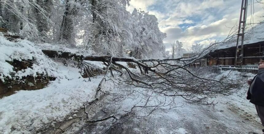 Kara yolunda devrilen ağaç nedeniyle yol ulaşıma kapandı. O esnada otomobili ile yoldan geçen bir sürücü, ağacın devrileceğini anlayıp aracını durdurdu. Olayın ardından bölgede bulunan vatandaşlar, devrilen ağı yoldan kaldırarak ulaşımın yeniden sağlanması için yoğun çaba gösterdi.