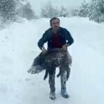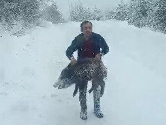Sinop’un Erfelek ilçesinde karlı yolda karşılaştığı yaban domuzu sürüsünden bir yavruyu araçtan inerek kovalayıp eliyle yakalayan vatandaş, sosyal medyada büyük yankı uyandıran görüntülere ilişkin konuştu.