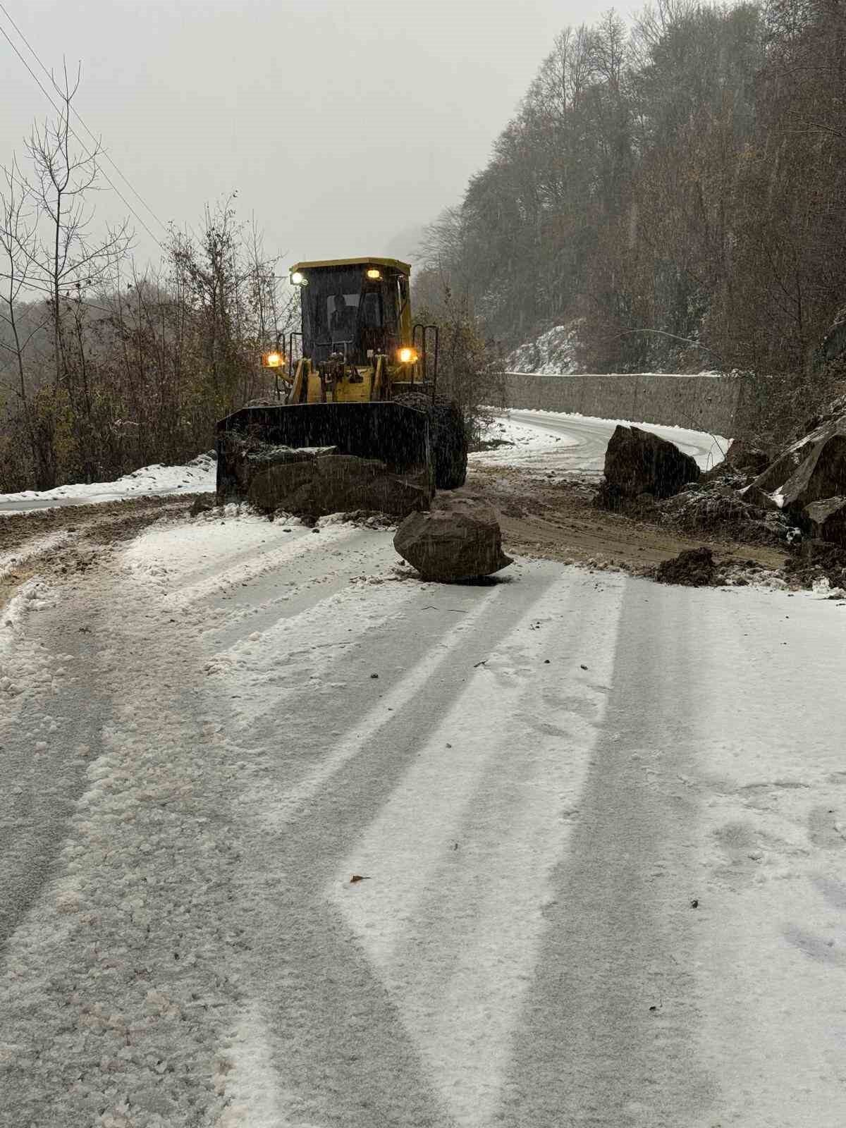 Olayın bildirilmesi üzerine İlçe Özel İdaresi ekipleri hızla bölgeye sevk edildi. Ekiplerin iş makineleriyle yaptığı çalışmalar sonucunda yola düşen toprak ve kaya parçaları temizlenerek yol yeniden güvenli bir şekilde ulaşıma açıldı.