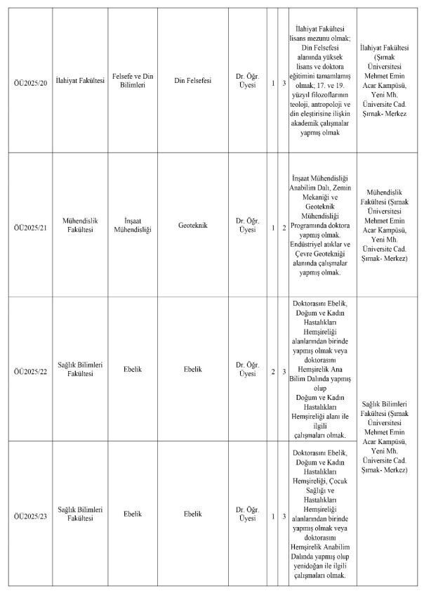 Şırnak Üniversitesi, 17 Aralık 2025 tarihinde Resmi Gazete’de yayımlanan ilanıyla yeni akademik kadrolar için başvuru çağrısında bulundu.