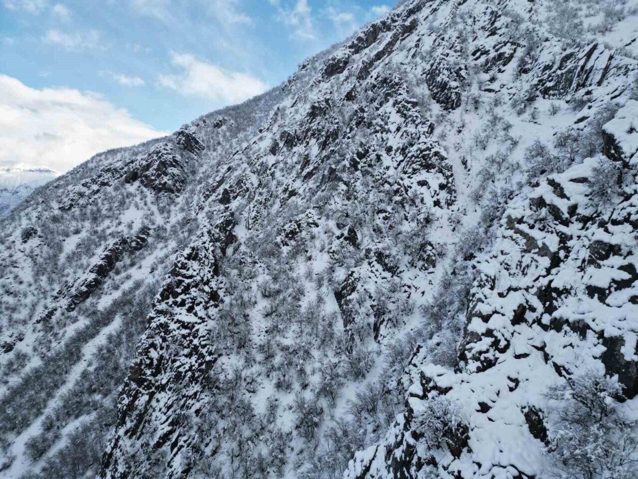 Şırnak’ın Beytüşşebap ilçesinde yoğun kar yağışı sonrası bal ormanları beyaza büründü