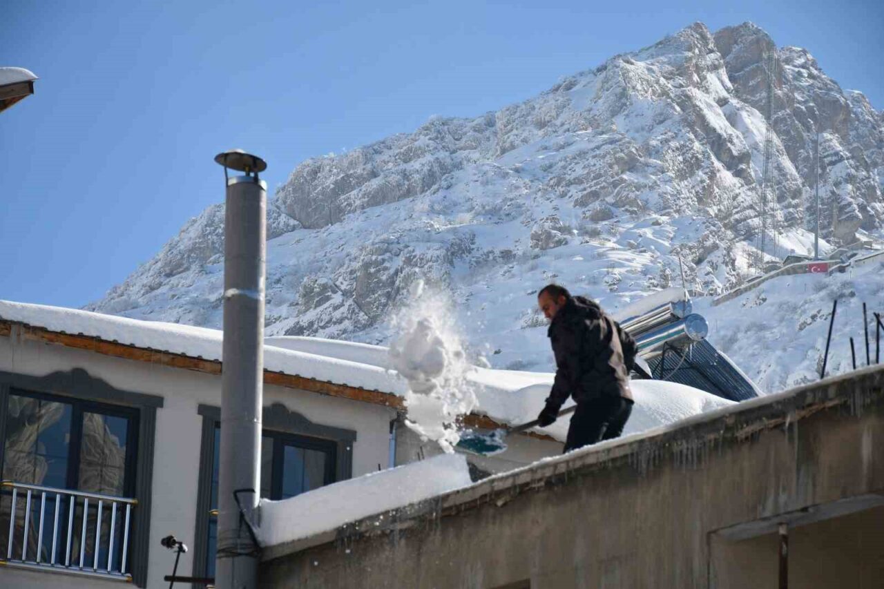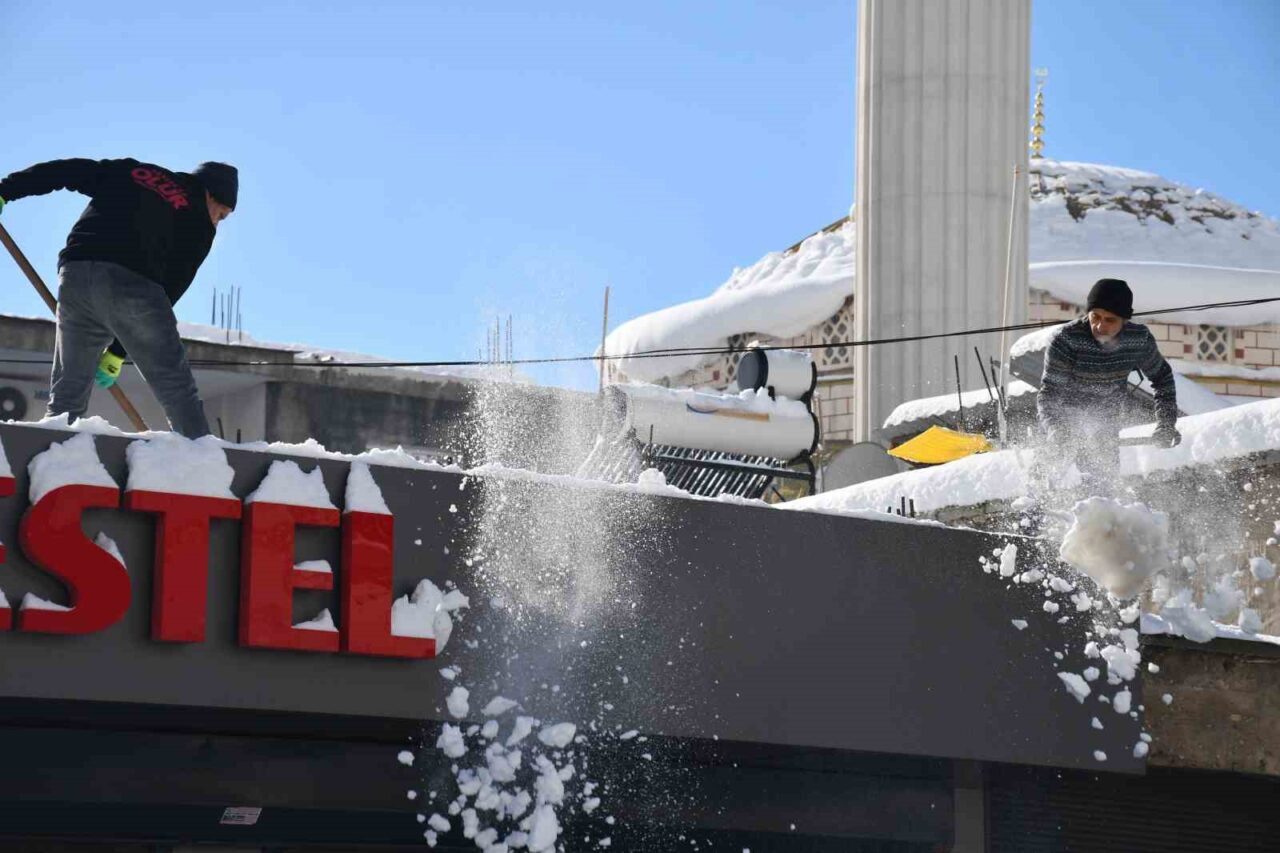 Şırnak’ta kar yağışı sonrası damlarda biriken kar temizleniyor
