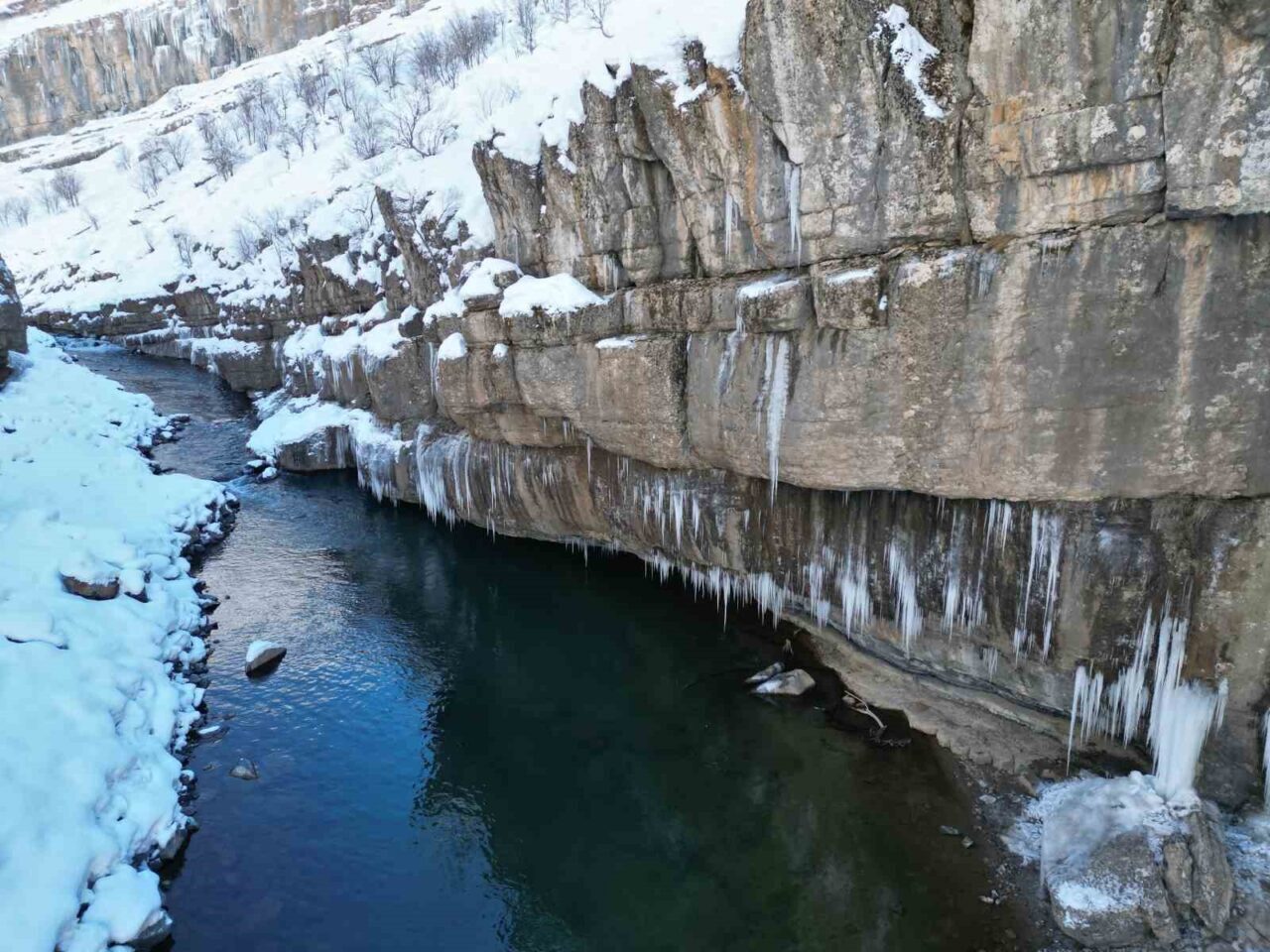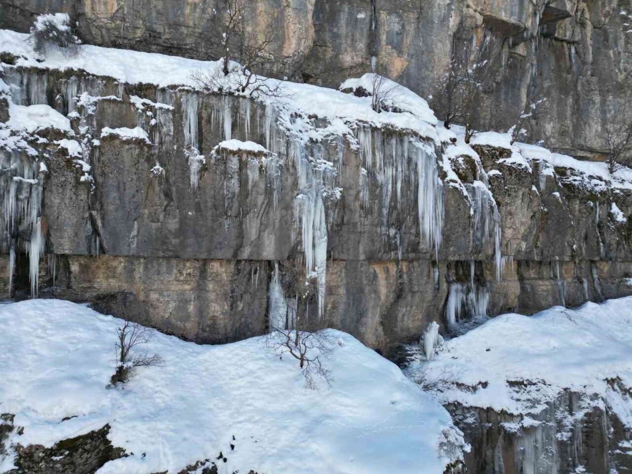 Şırnak’ta çetin geçen kışla birlikte dağlarda buzdan şelaleler meydana geldi. Dev sarkıtların oluştuğu bölgelerde her yer buz pistine dönüştü.