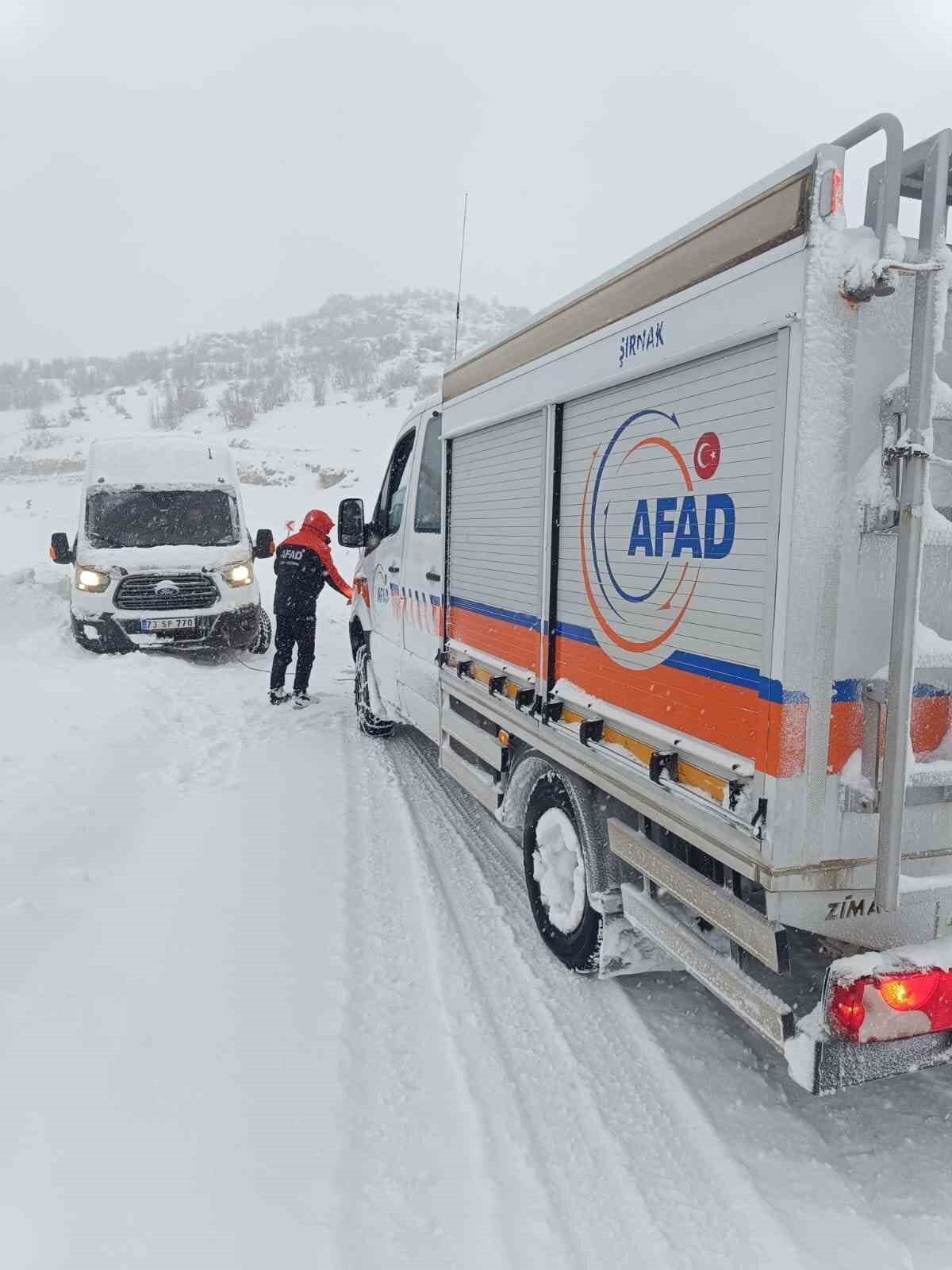 Afet ve Acil Durum Yönetim Merkezinin toplandığı kentte, kurumlar arası koordinasyon sağlanarak karla mücadele çalışmaları hız kesmeden sürdürülüyor. Kar yağışının etkisini artırmasıyla birlikte Cizre-Nusaybin, Cizre-Silopi, Şırnak-Cizre, Şırnak-Kumçatı-Kasrik, Şırnak-Siirt, Şırnak-Uludere, Uludere-Beytüşşebap ve Beytüşşebap-Hakkari karayolları başta olmak üzere, köy yolları dahil il genelinde kapanan tüm güzergahlarda ekipler aralıksız yol açma çalışması yürütüyor. Yollarda mahsur kalan vatandaşlara ise AFAD ve Kızılay ekipleri tarafından gıda, barınma ve temel ihtiyaç desteği sağlanıyor. Şırnak AFAD İl Müdürlüğü, sosyal medya hesabından yaptığı açıklamada vatandaşları özellikle buzlanma, don olayları ve çığ riski konusunda uyararak, zorunlu olmadıkça trafiğe çıkılmaması ve yetkili mercilerin uyarılarının dikkate alınması çağrısında bulundu.