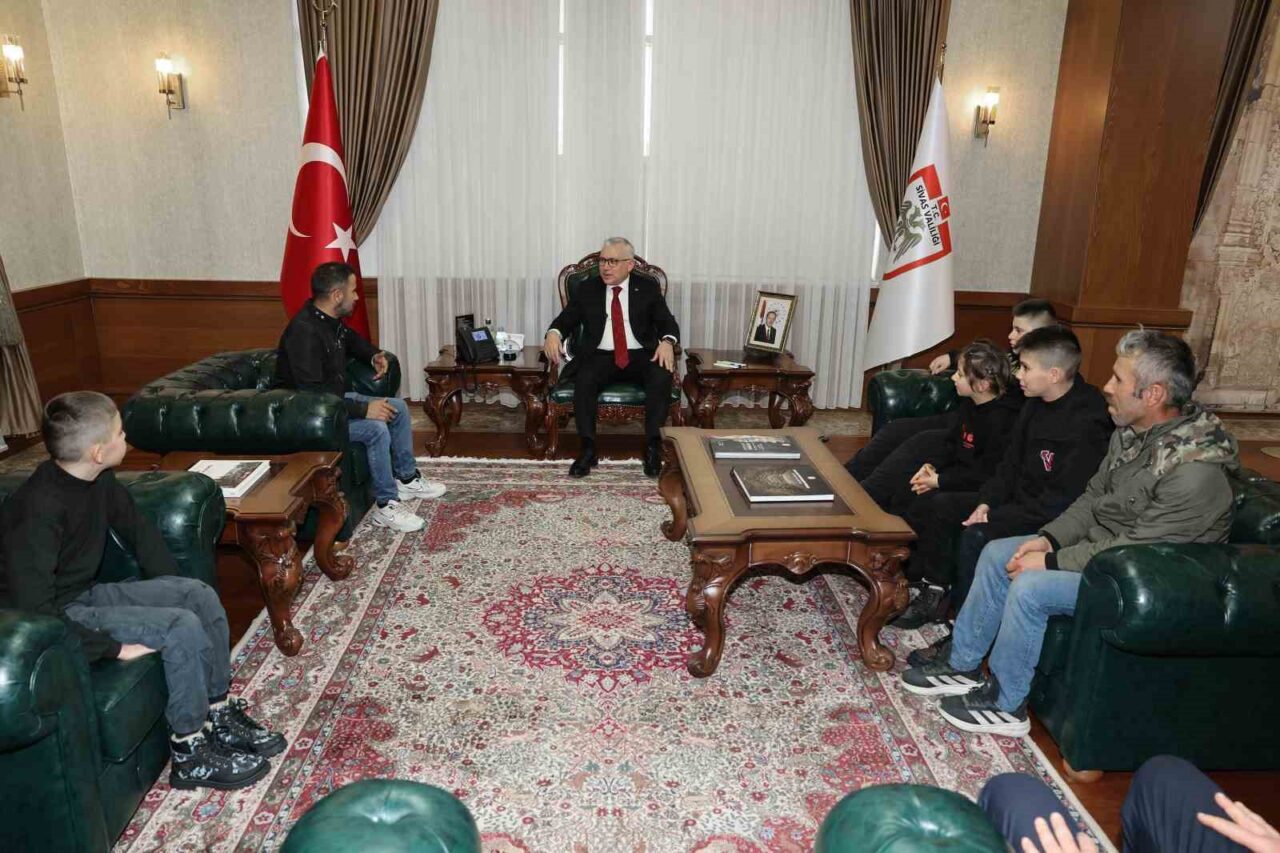 Kültür ve Turizm Bakanlığı’nın davetlisi olarak bugün İstanbul’a gidecek olan Adem Soylu ve çocuklarına tebriklerini ileten Vali Şimşek, kendilerini başarılarından dolayı kutladı. Vali Şimşek, günün anısına çocuklara Sivasspor forması hediye ederek hatıra fotoğrafı çektirdi.