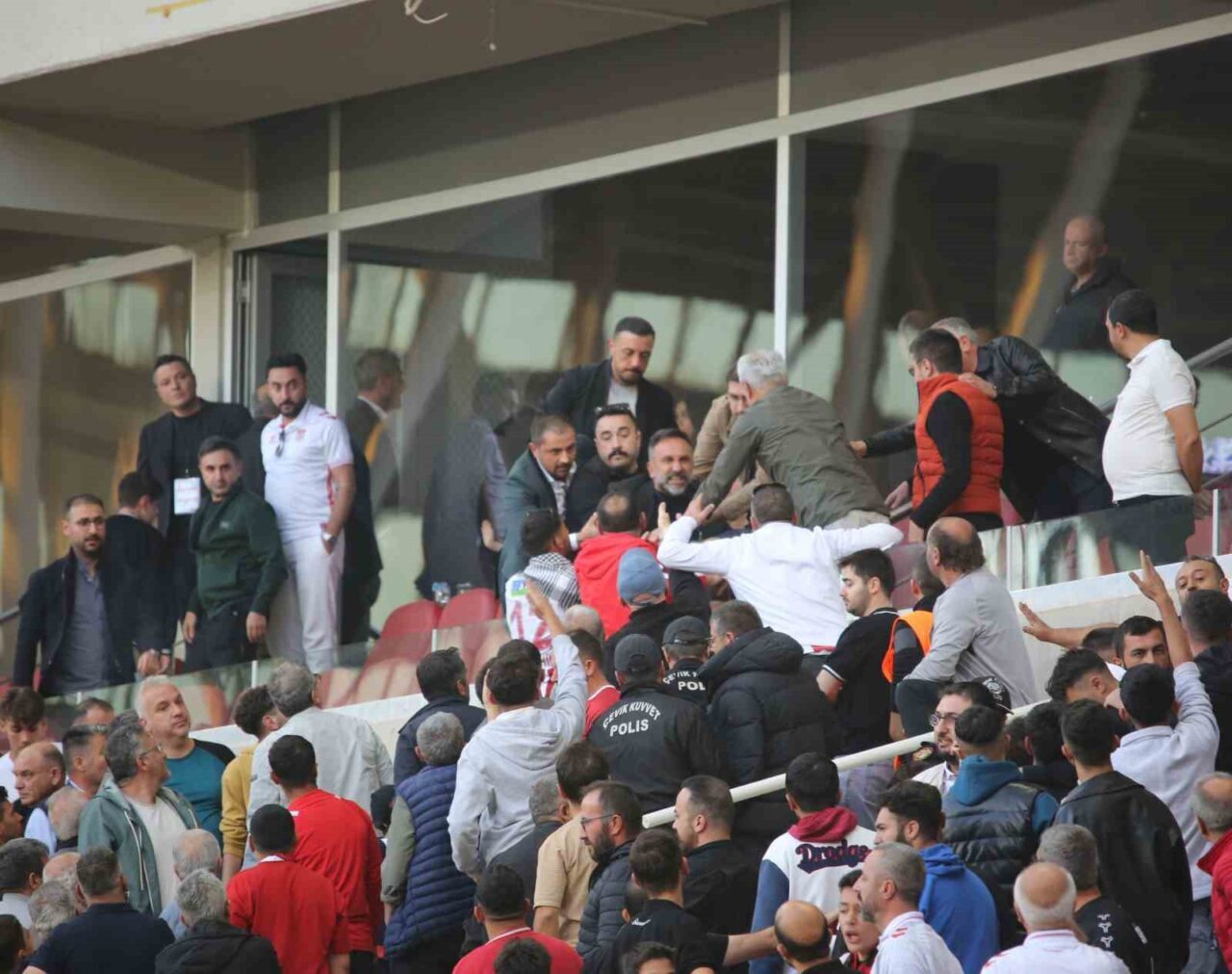 Özbelsan Sivasspor’un Başkanı Gökhan Karagöl, Serik Spor ile oynanan maçın sona yaklaşan dakikalarında, stadyum locasından çıkarak tribünlerde bulunan taraftarlarla çatışmanın içine girdi.