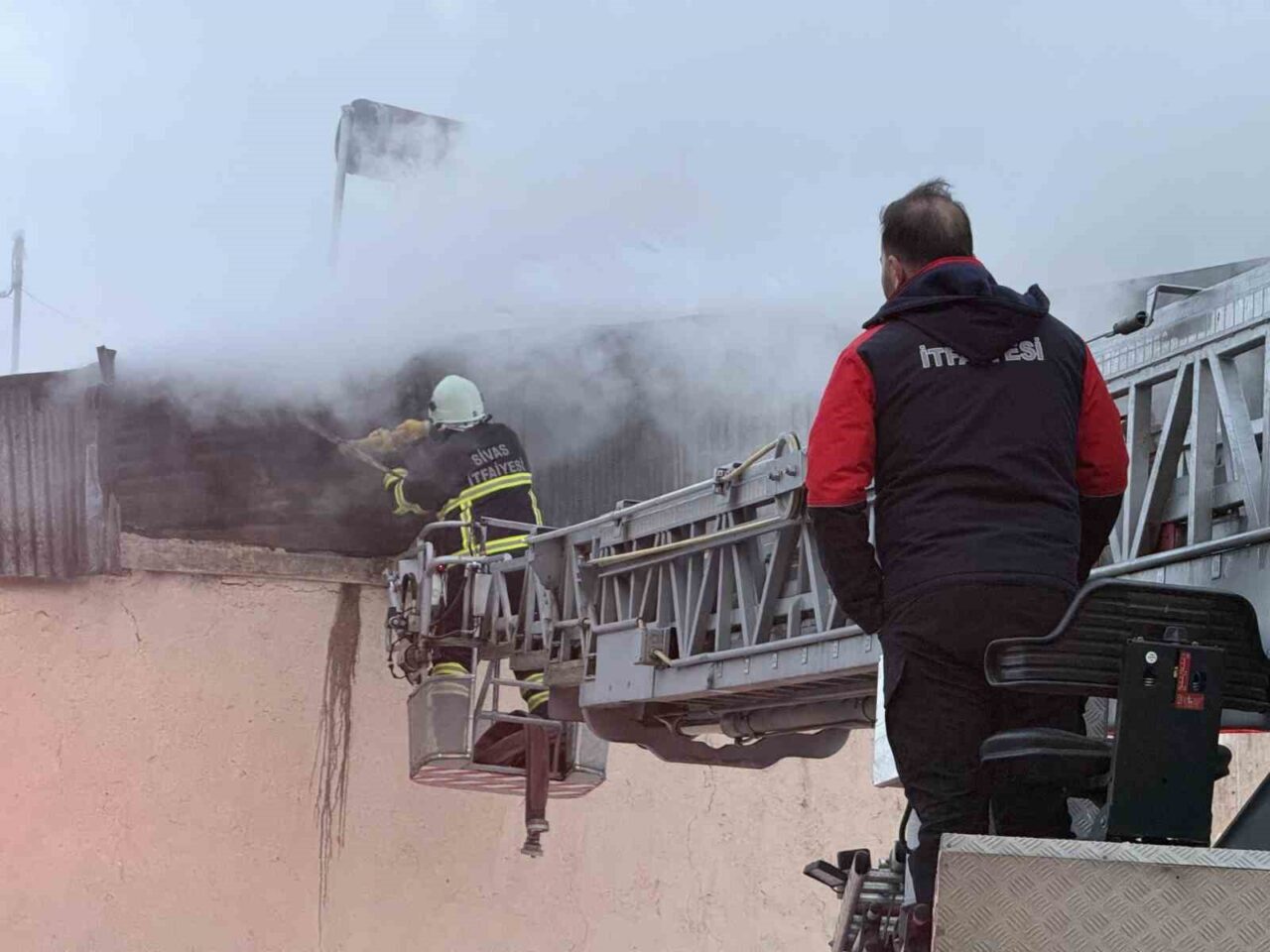 Sivas’ta iki katlı müstakil bir binanın çatı katında meydana gelen yangın, itfaiyenin zamanında müdahalesiyle kontrol altına alındı.