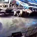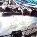 Olayda bazı hayvanlar telef olurken, yaşanan anlar güvenlik kamerası tarafından kaydedildi.