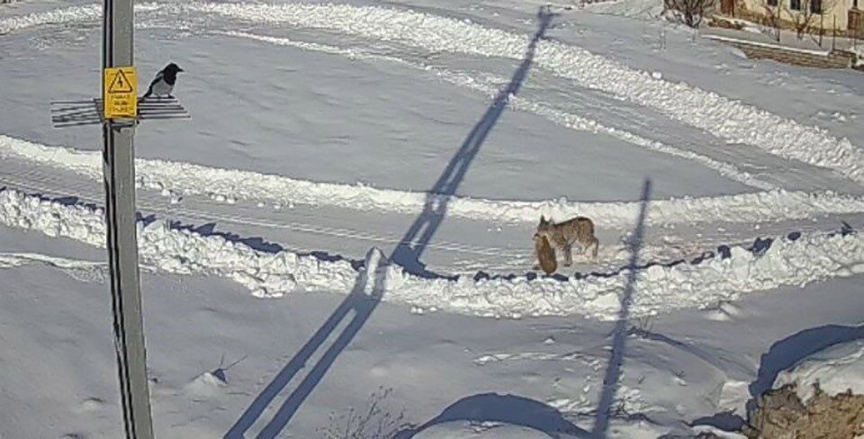 Sivas’ta bir köyde yaban tavşanını avlayan vaşağın, bir gün sonra iki kurt tarafından kovalandığı anlar güvenlik kamerasına yansıdı. Belgeselleri aratmayan görüntülerde, iki vaşak kurtlardan kurtulmayı başardı.