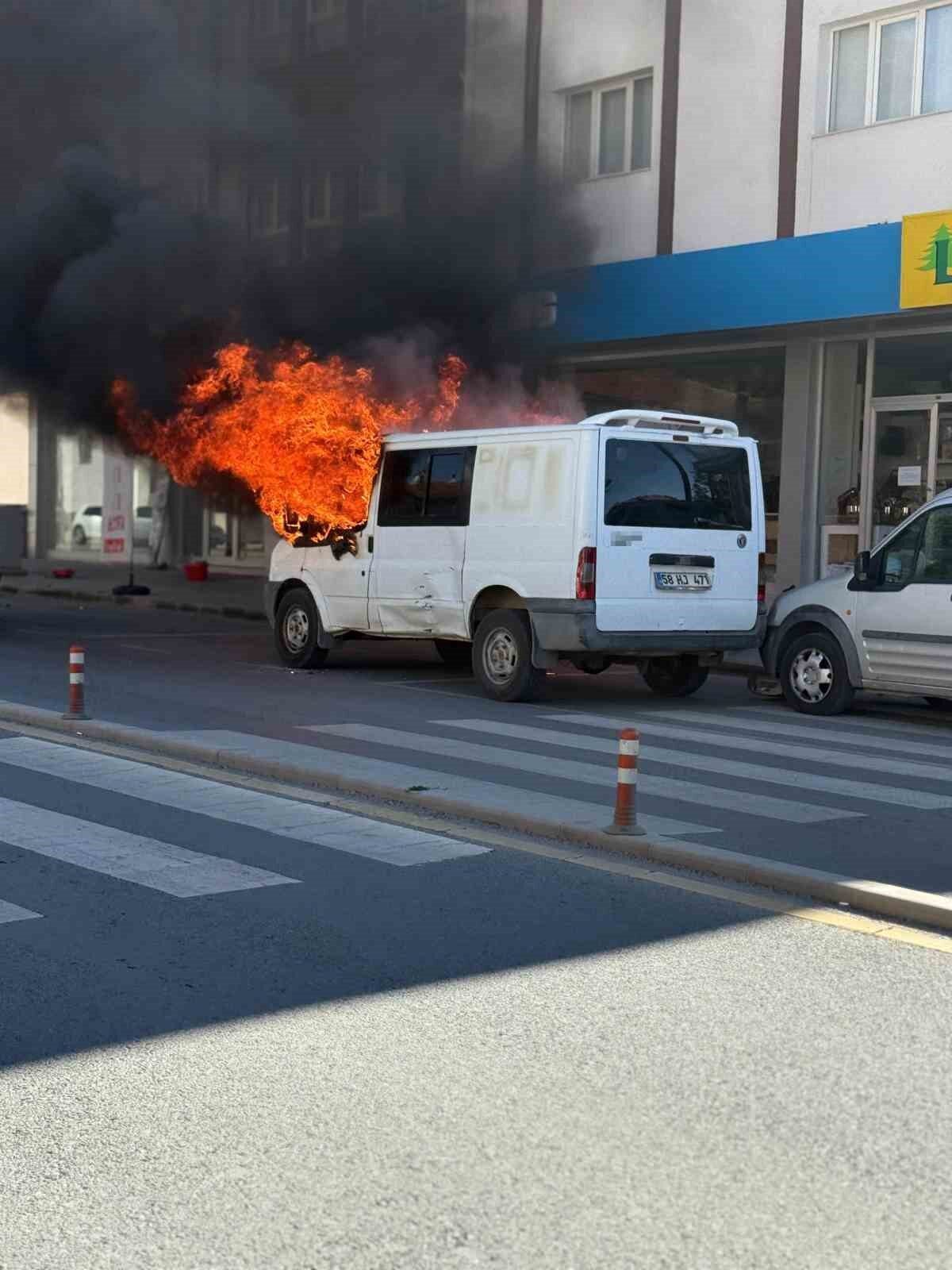**SİVAS’TA PARK HALİNDEKİ MİNİBÜS ALEV ALEV YANDI**